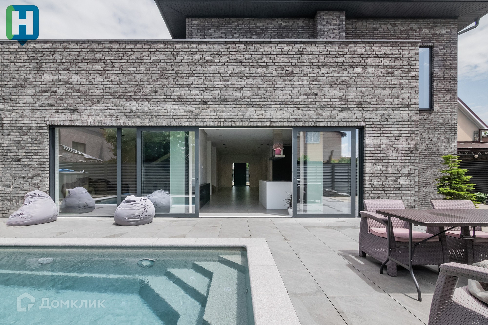 Дизайн и функционал продуман до деталей, использовались только материалы премиум-класса от европейских качественных производителей. Дом с большими витражными окнами и выходом к бассейну.