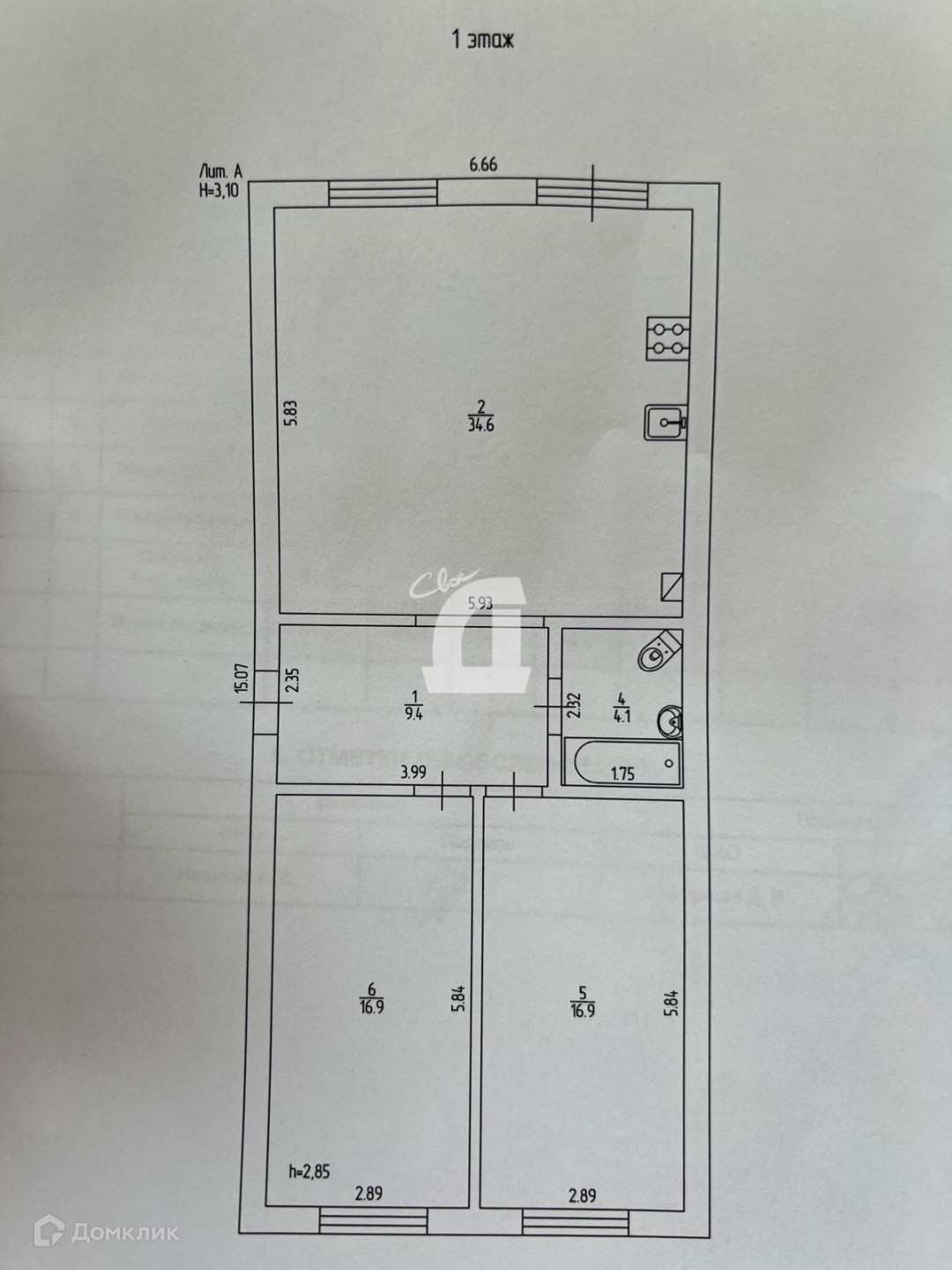 Высота потолков 2.85 м