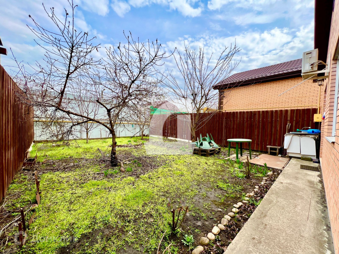 На участке растут плодовые деревья, территория участка облагорожена.