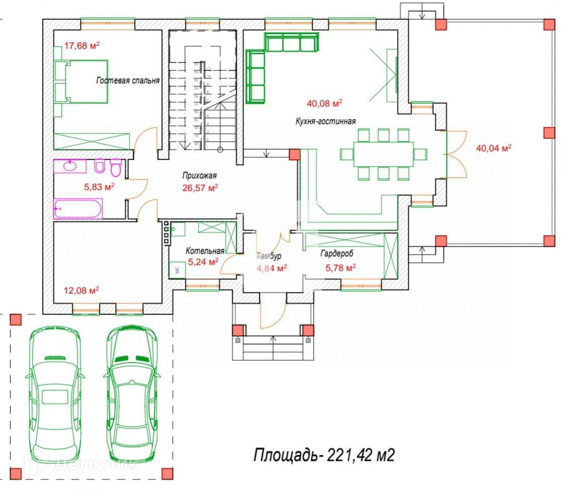 Общая площадь 230 м2