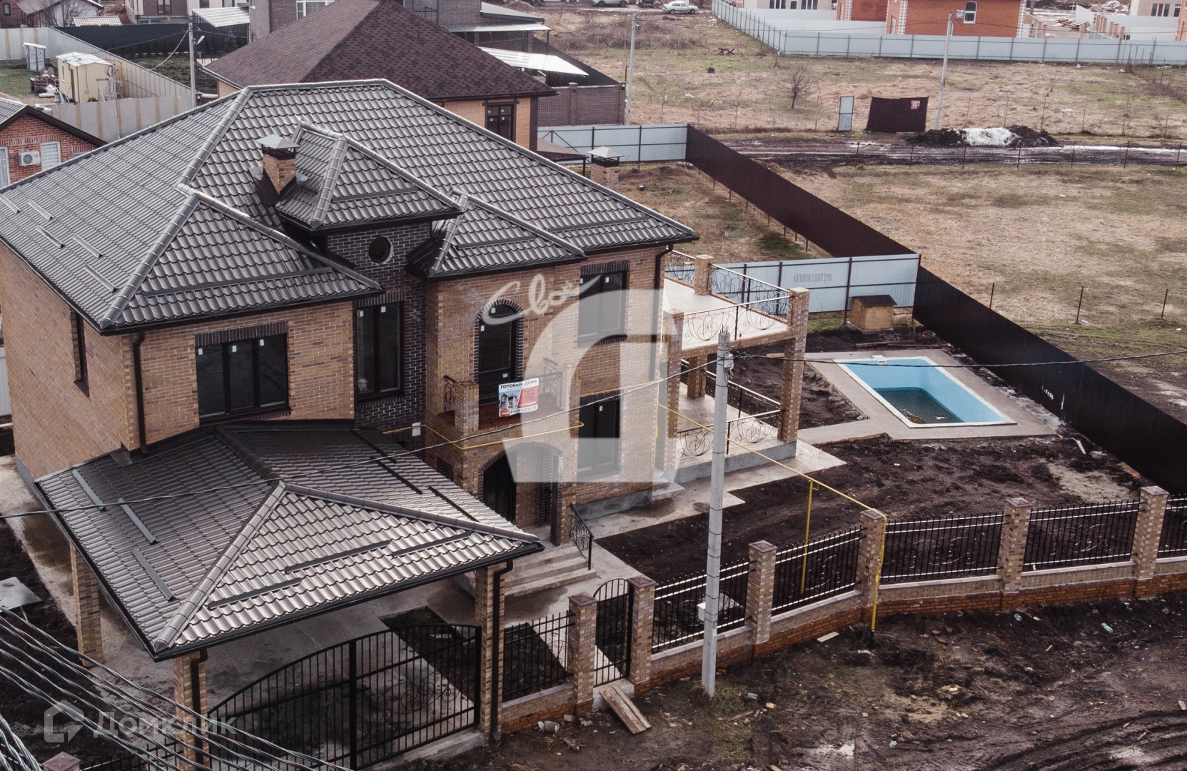 Представляю Вашему вниманию отличную усадьбу с прекрасной планировкой, просторным участком , газом и бассейном. Планировка дома создавалась с учетом пожеланий самого требовательного клиента, на кухне-столовой  разместится не только вся Ваша семья , но гости , а если для душевного застолья и этого мало- милости просим на огромную террасу в 40 кв.м., так же на первом этаже гостевая спальная , кабинет и вместительная гардеробная, на втором этаже для Вашего комфорта две детских комнаты , ванная и гардероб, родительская спальная со своей ванной и гардеробной комнатой и выходом на балкон, со второго этажа выход на 40 метровую террасу. Во дворе навес для двух-трех авто и бассейн. Дом в черновой отделке. Для расчета подойдет любая форма , включая любую ипотеку ( it, семейная, гос.поддержка ) .