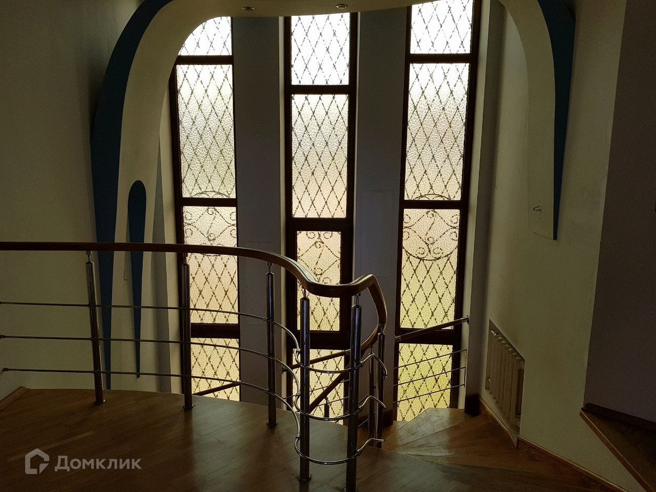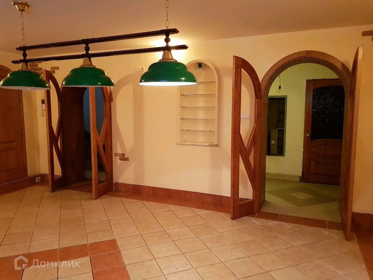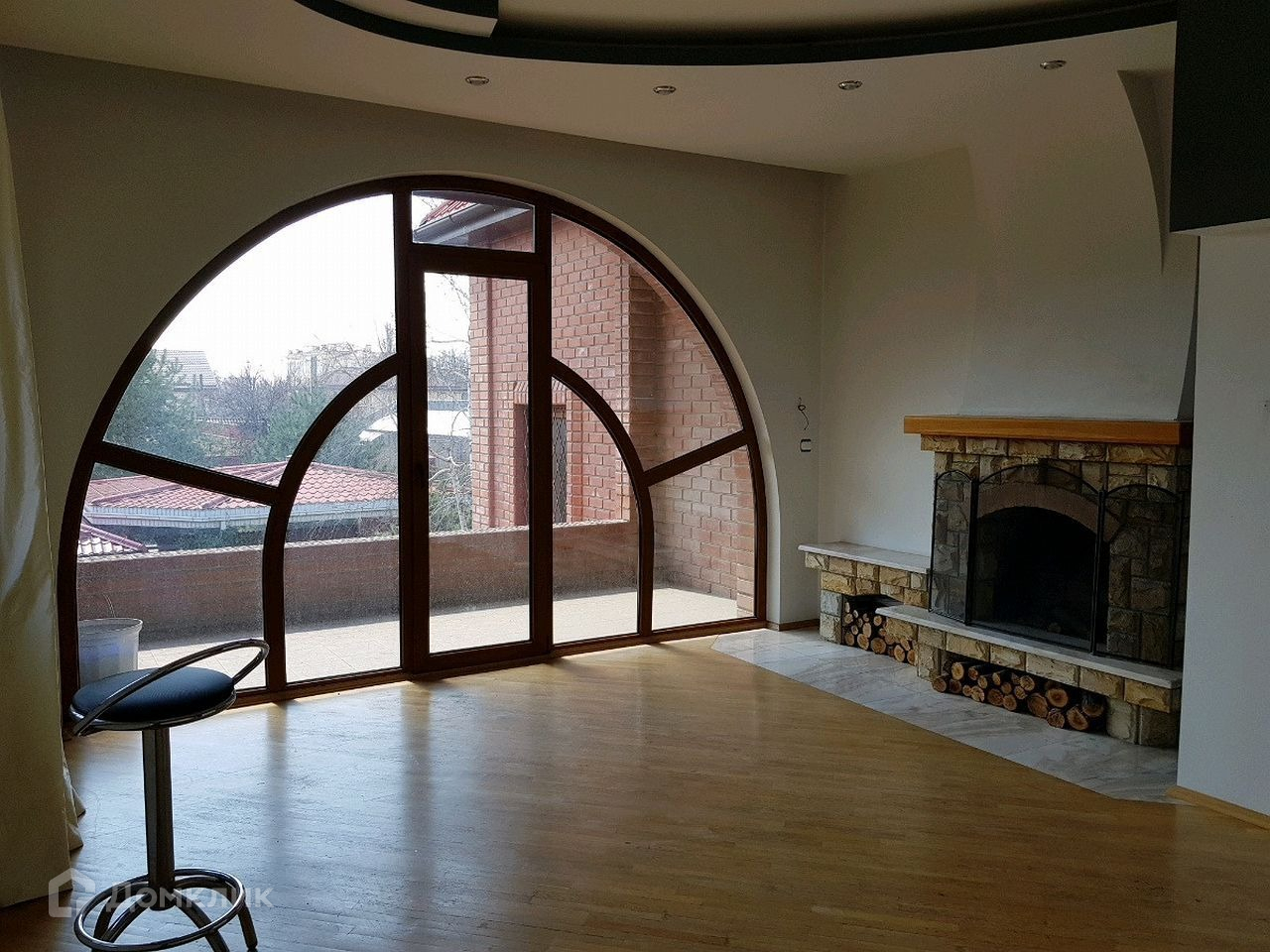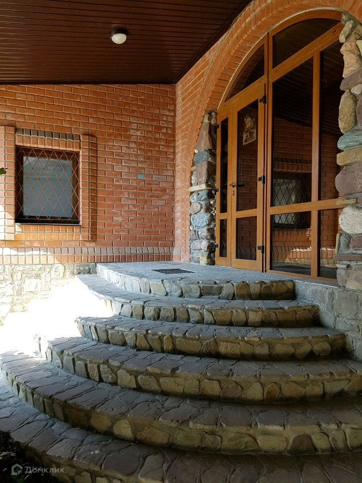 Состояние дома-требуется косметический ремонт. В доме на первом этаже большая гостиная, кухня, санузел, ванная комната, на втором этаже санузел и 3 жилые комнаты, в одной из них имеется камин и большой балкон с видом во двор, третий этаж мансардный большая комната, так же имеется большой цокольный этаж на нем расположены 2 комнаты под спортзал и бильярдную, сауна и бассейн.