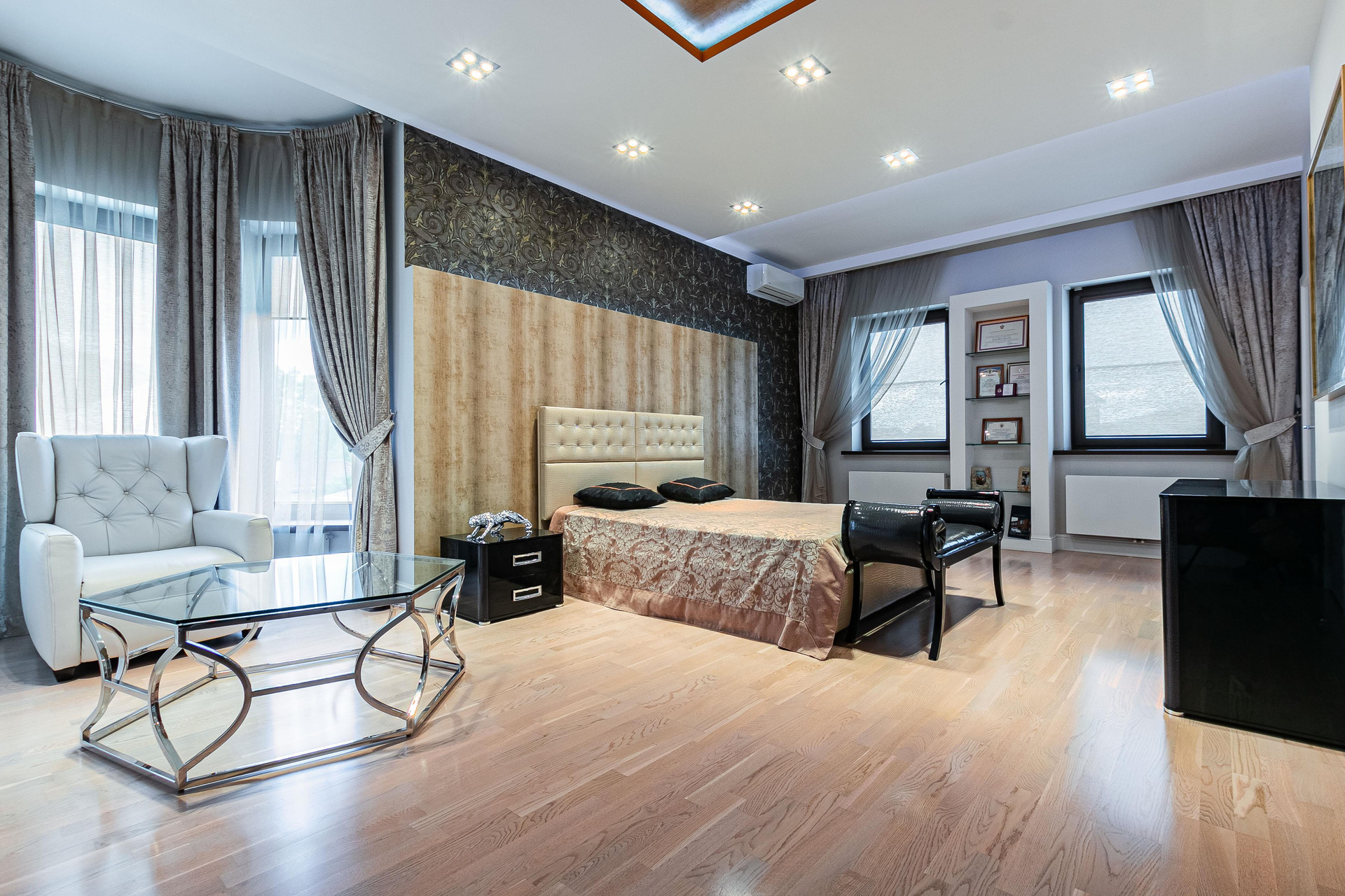 Во всём доме полы выполнены настоящим паркетом и плиткой. В котельной установлена система фильтрации и очистки воды с резервным баком, в доме установлены терморегуляторы управления по температуре. Высокие потолки 3,2 м.