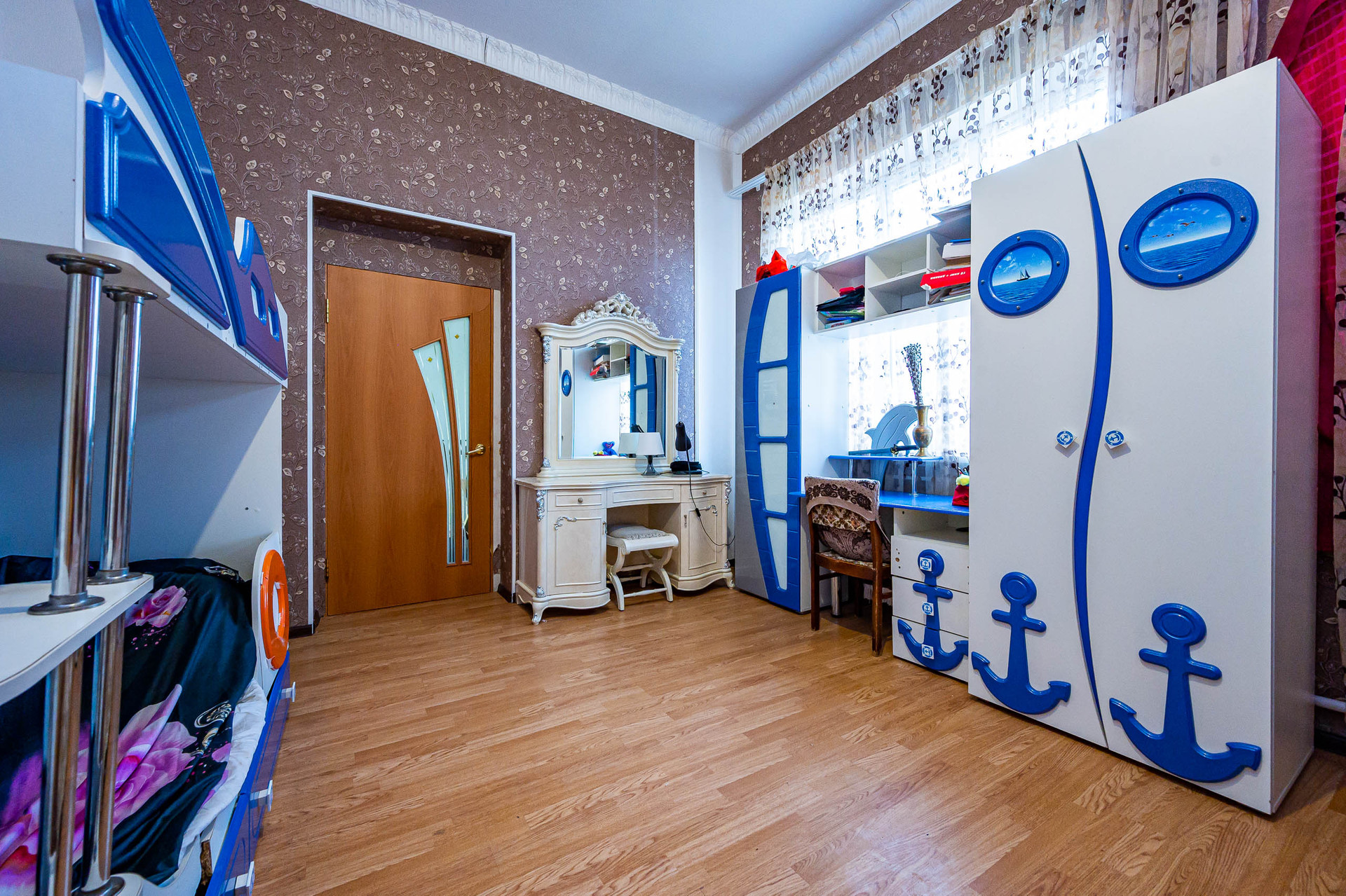 Строился в 2000 году. Дом кирпичный, двухэтажный, с продуманной планировкой. Много жилых комнат. На первом этаже расположены: холл, гостиная, кухня. На втором - 4 спальни и санузел.