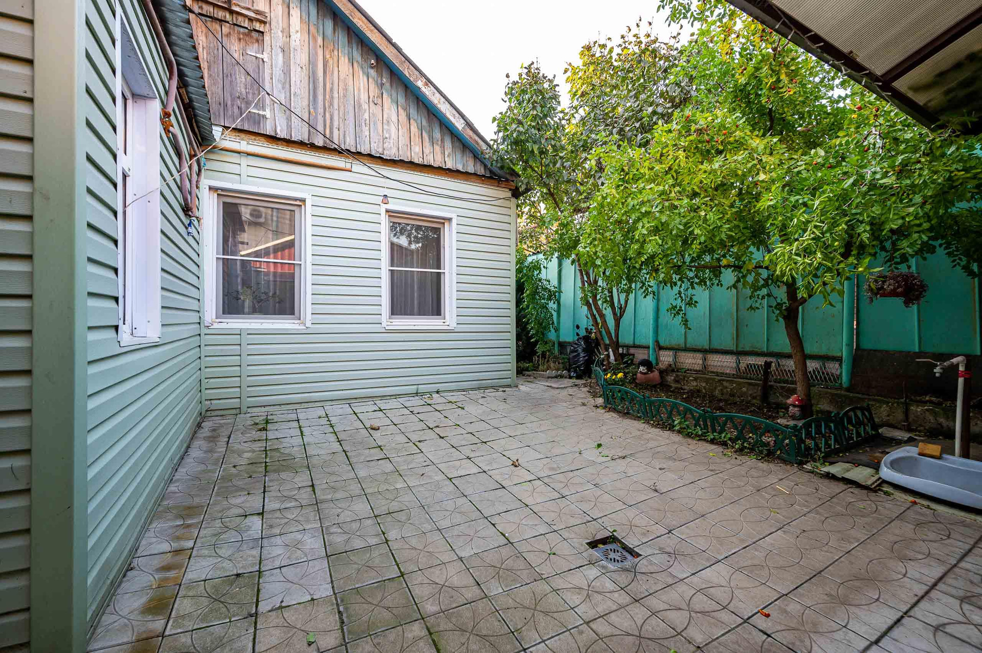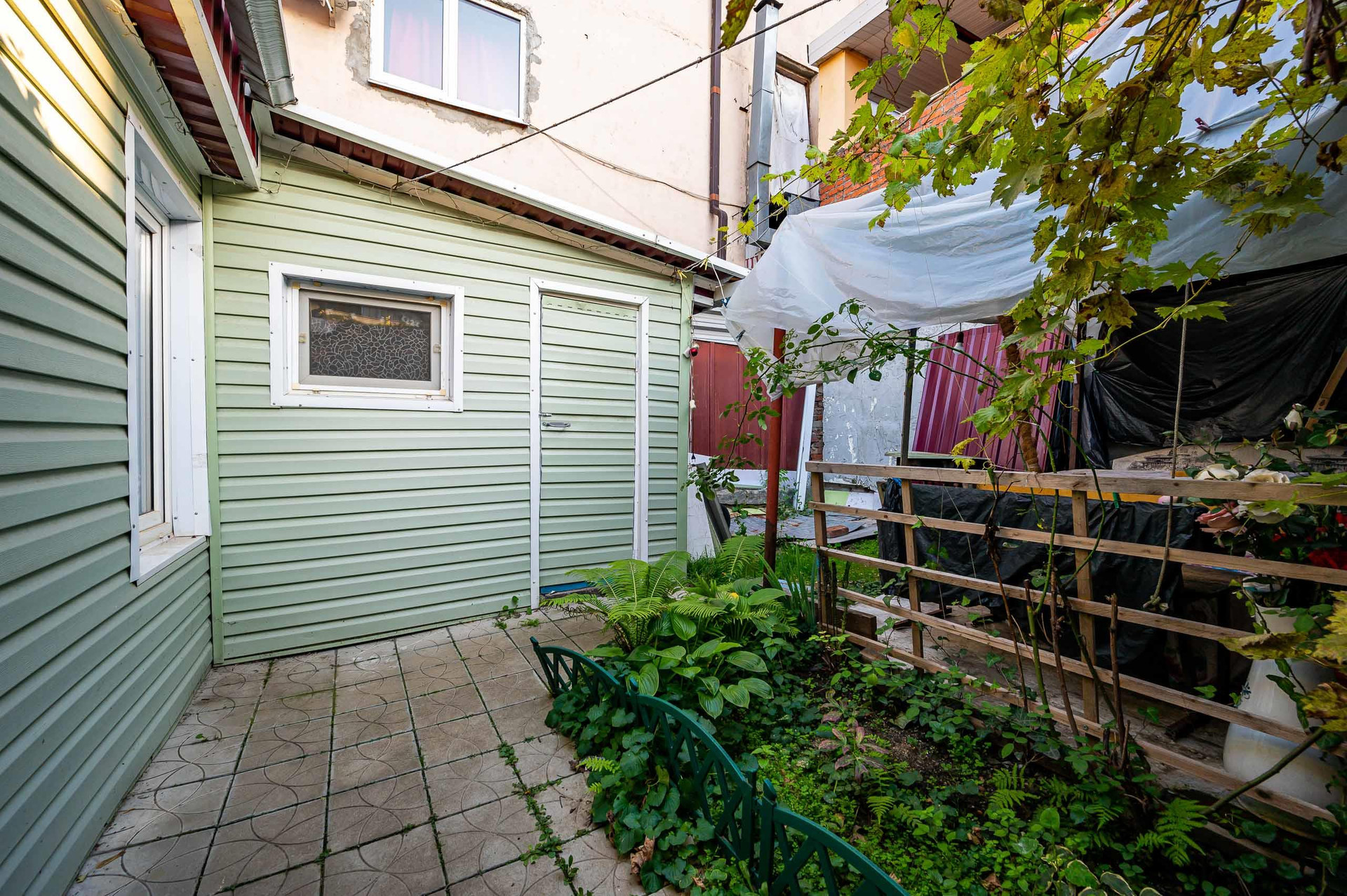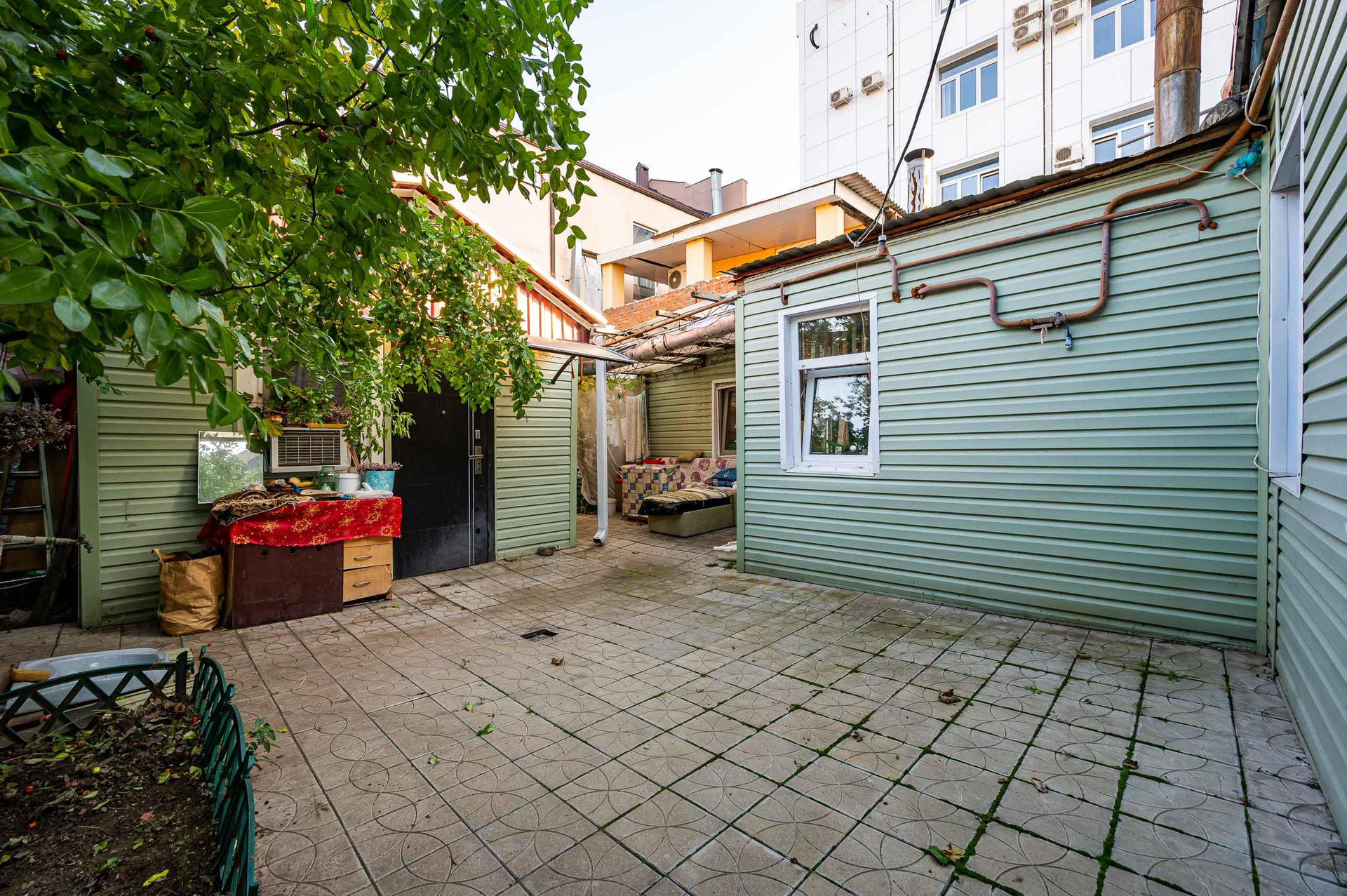 Дворик выложен плиткой. Уютное место в центре городской суеты.
