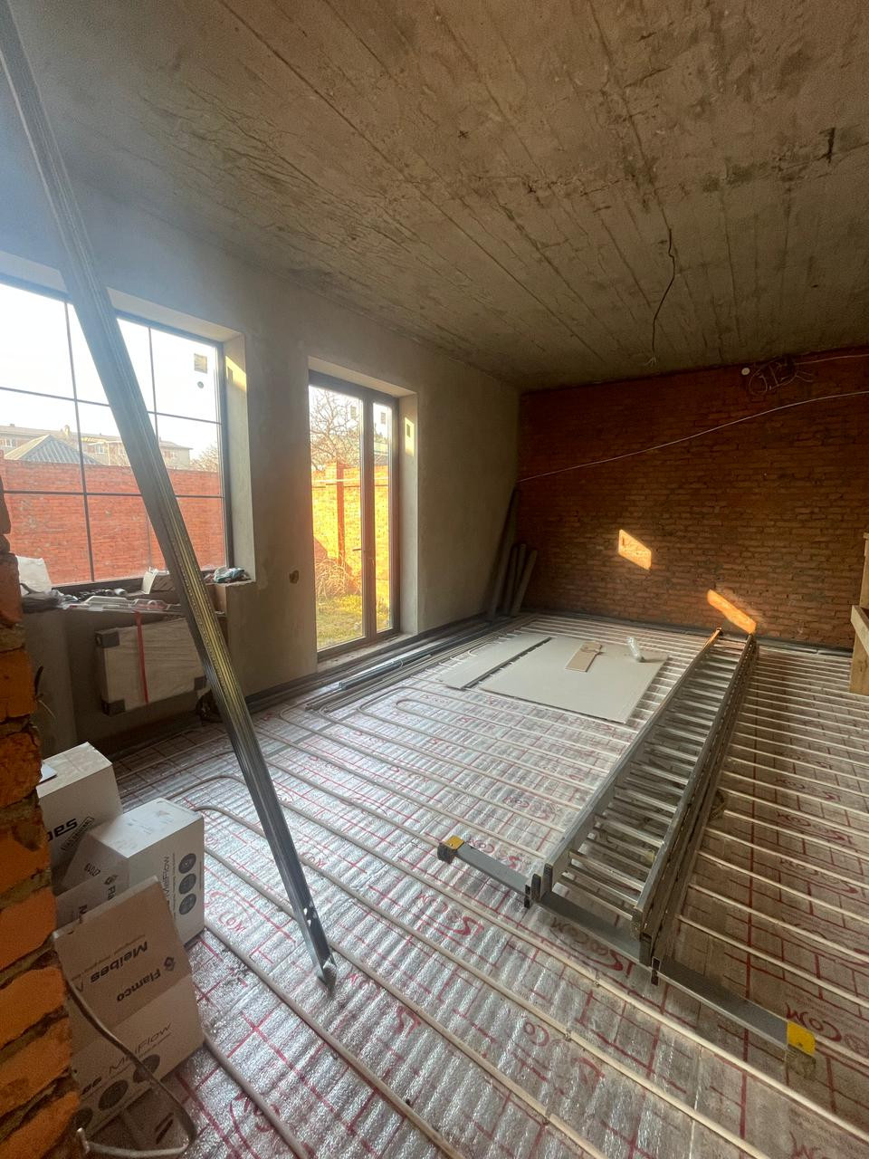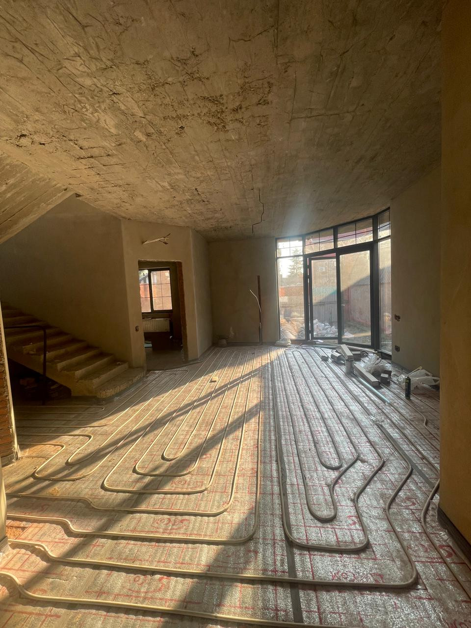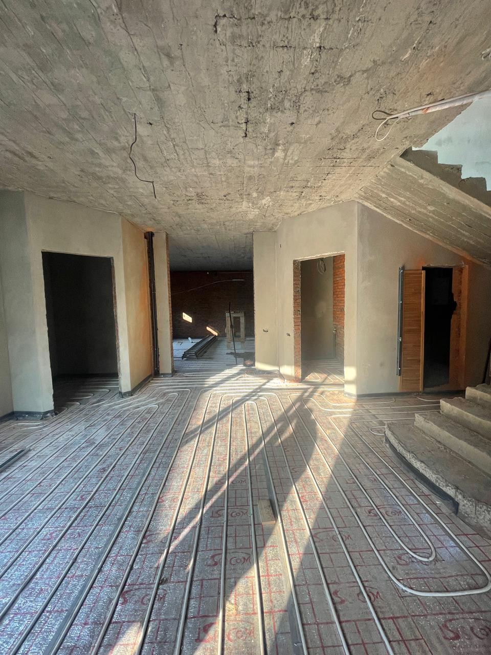 Дом стоит на 4 сотках земли, в переулочке, 4-й дом от дороги. Не слышно транспорт, абсолютно. Правда еще и роль играет шумоизоляция... Окна итальянские! Если вам покажется участок небольшим, можно купить еще дополнительные 3 сотки земли у соседей, это не проблема! По всему дому  установлены теплые полы, газ-центральный, свет и канализация - центральные! Зарубежные котлы, насосы, батареи....