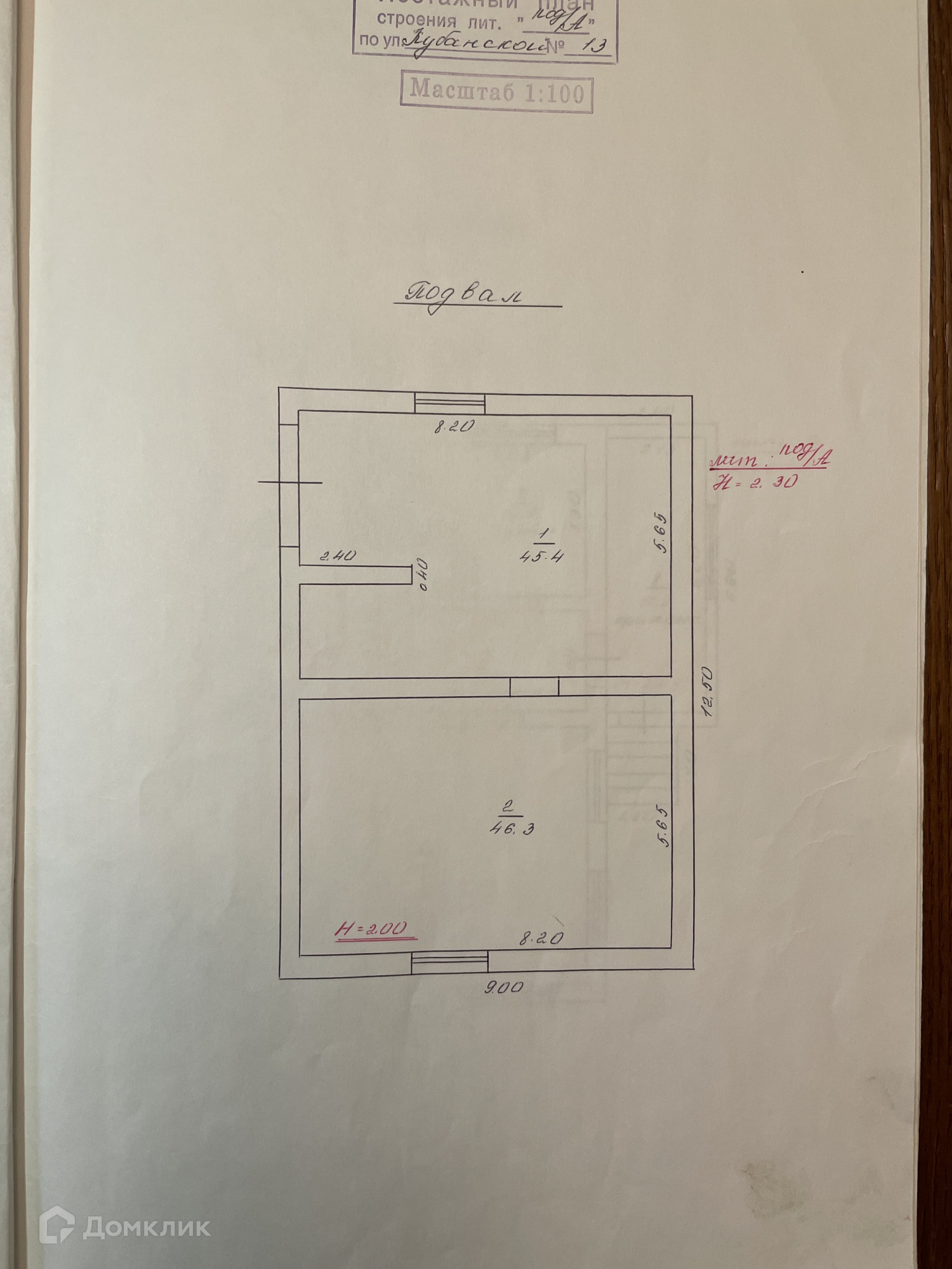 В доме 2 этажа и подвал. Подвал сухой, высота - 2,05 м.