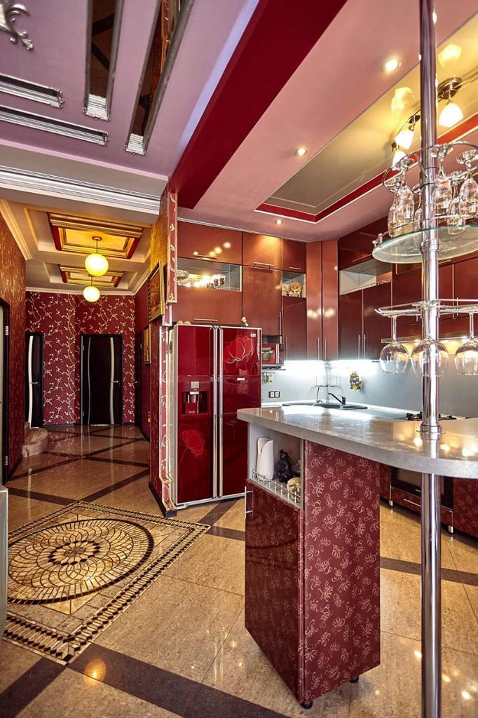Дизайнерский ремонт: высота потолков 3 метра, теплые полы, панорамные окна, видеонаблюдение, домофон на каждом этаже, сплит-системы, проведена охранная сигнализация. 3 входа выхода. Основной, летний, с котельной. Дом с новой мебелью во всех комнатах, встроенные шкафы, бытовая техника, встройка. Полы керамогранит, ламинат. Потолки комбинированные гипсокартон, натяжные, зеркала, гипсовая лепнина, эксклюзивные короба. Все коммуникации центральные. Гараж капитальный на 2 авто, высота 3,20 метра, секционные ворота с электромеханизмом.