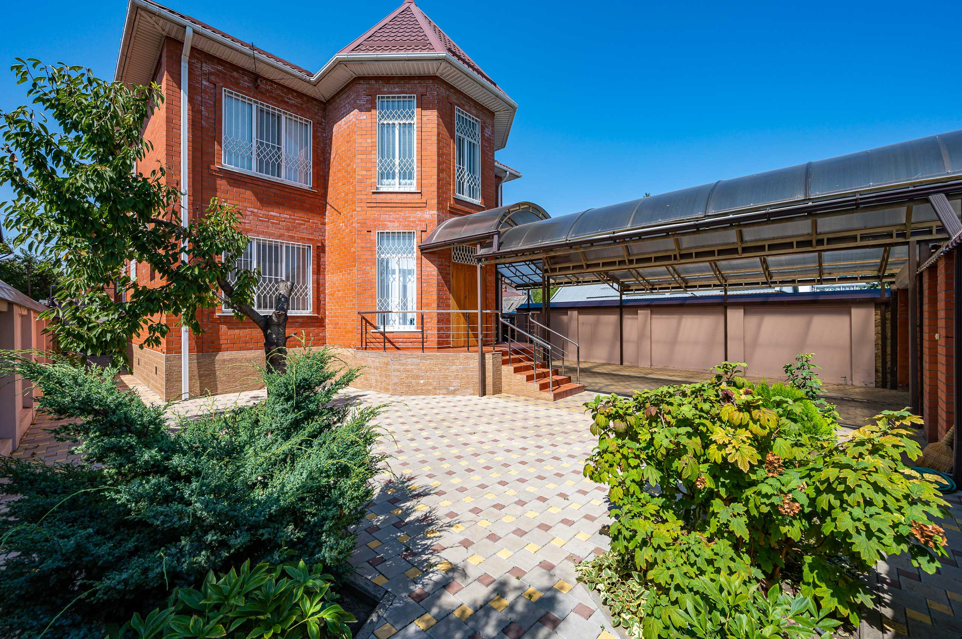 Дом полностью кирпичный, с грамотной планировкой. Двор в плитке, сделан навес для безопасности вашего автомобиля. Комнаты очень большие и светлые, 5 комнат, 2 санузла, кухня гостиная 21 кв.м.