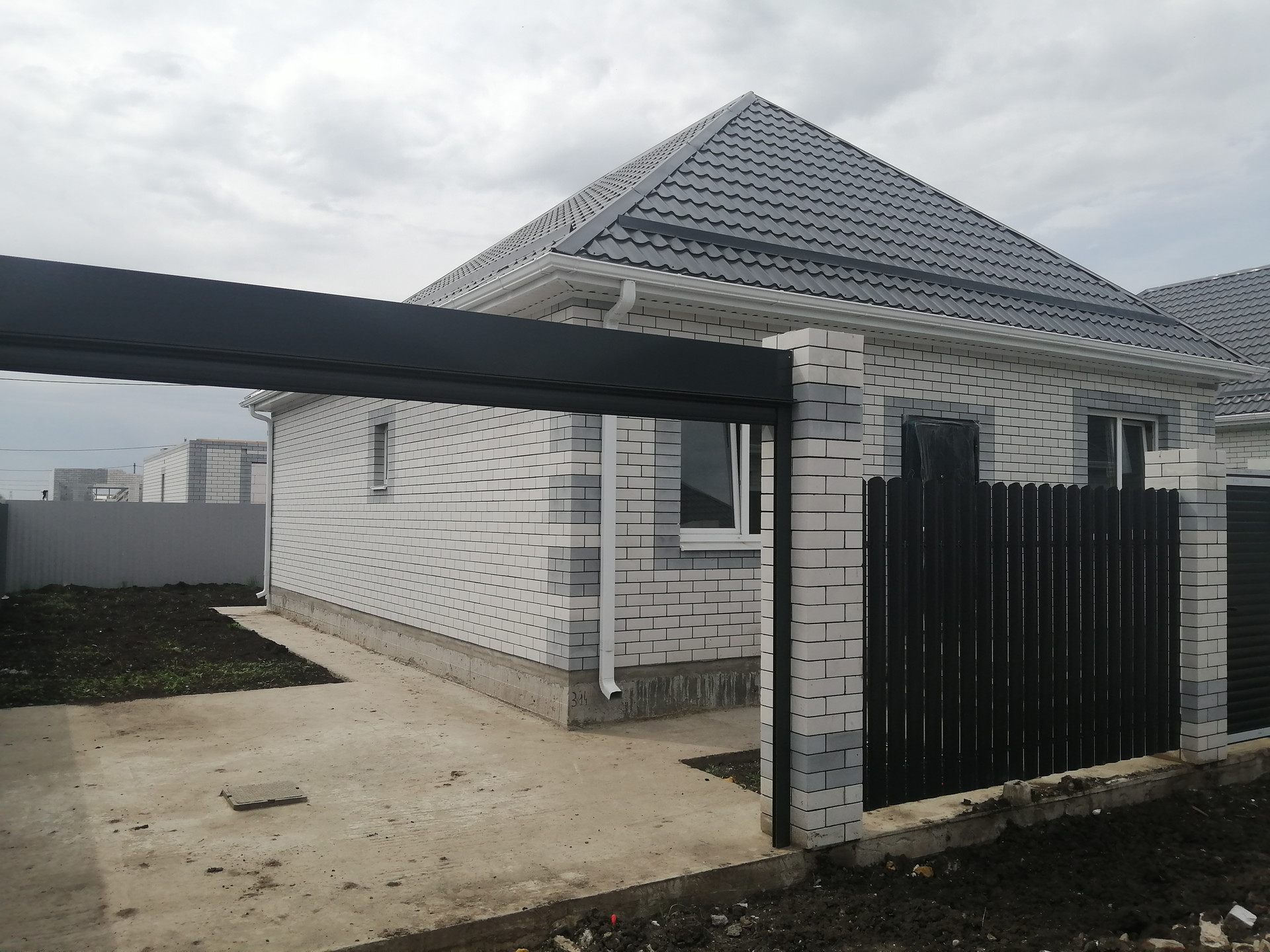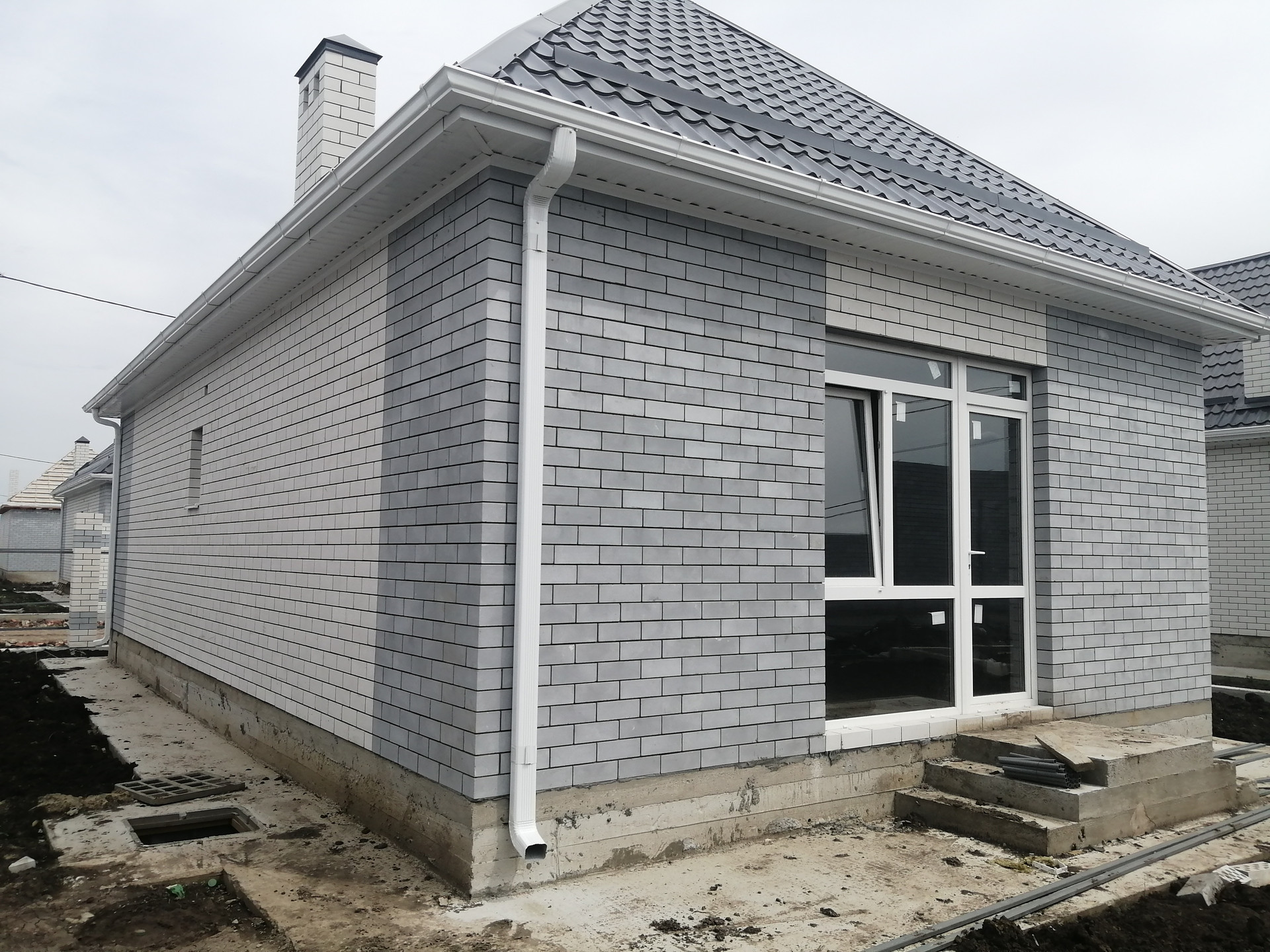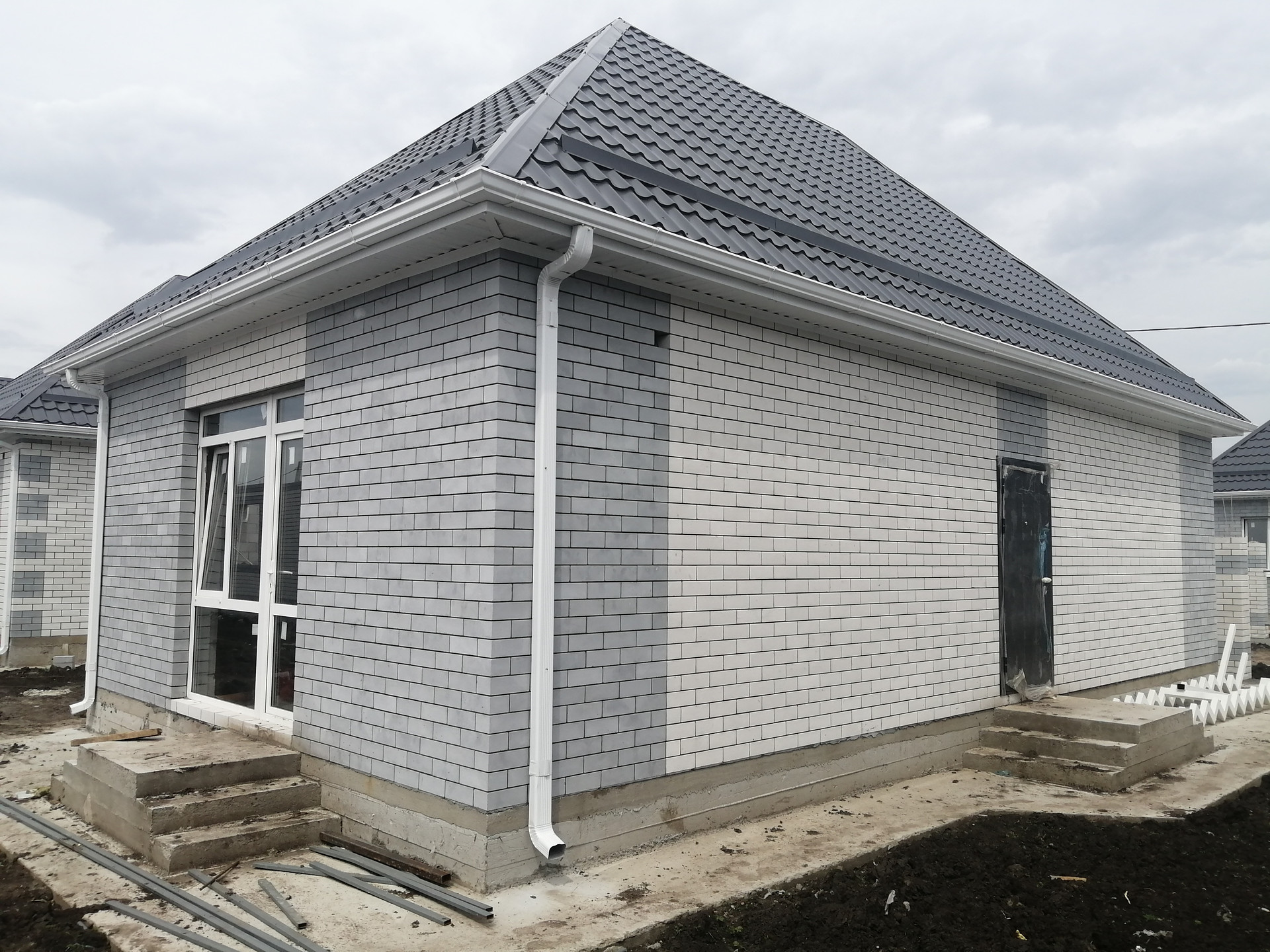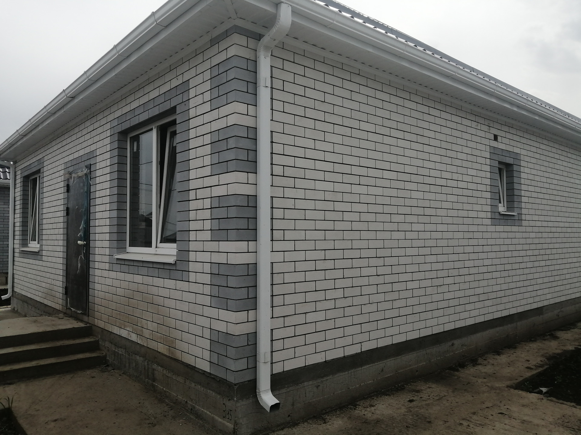 - Стены внутренние — газоблок, наружные — облицовочный кирпич,