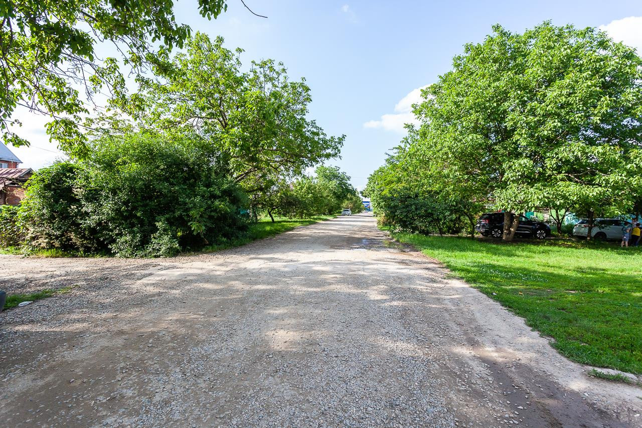 Широкий фасад дома  - 15 метров, участок правильной формы с плодовыми деревьями, отличный подъезд к дому по широкой улице.