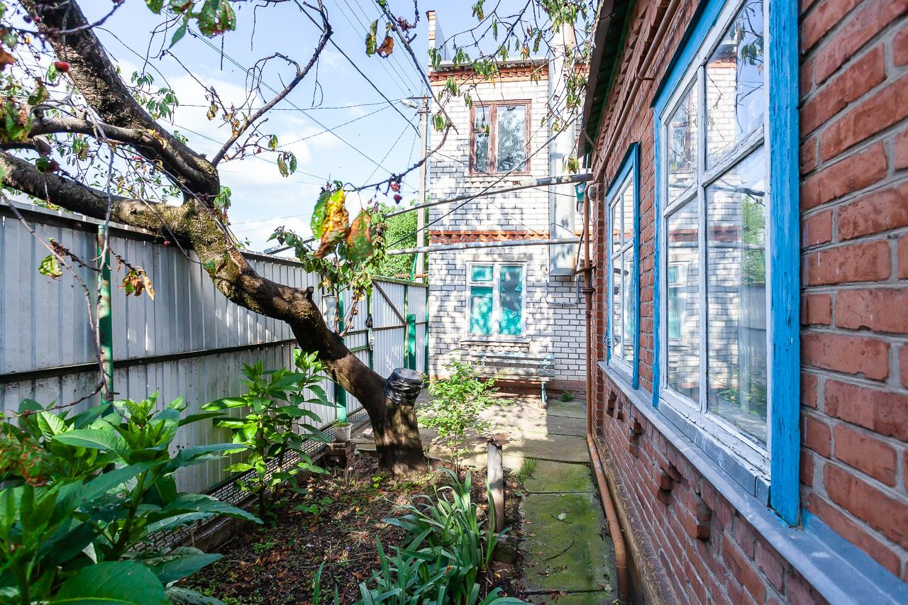 Продается участок с двумя домами. Один старый крепкий дом общей площадью 27,6 кв. м., если вместе с  кухней, то 35,4 кв.м. В доме газовое отопление, заведена вода и канализация.  Второй дом постройки 1993 года 100,2 кв.м. два этажа, с подведенными коммуникациями, свой сан. узел, кирпичный, без ремонта, на первом этаже есть гараж. Кроме этого во дворе есть еще летняя кухня, где установлен газовый котел и организованна ванная комната. Центральный газ, свет, вода.