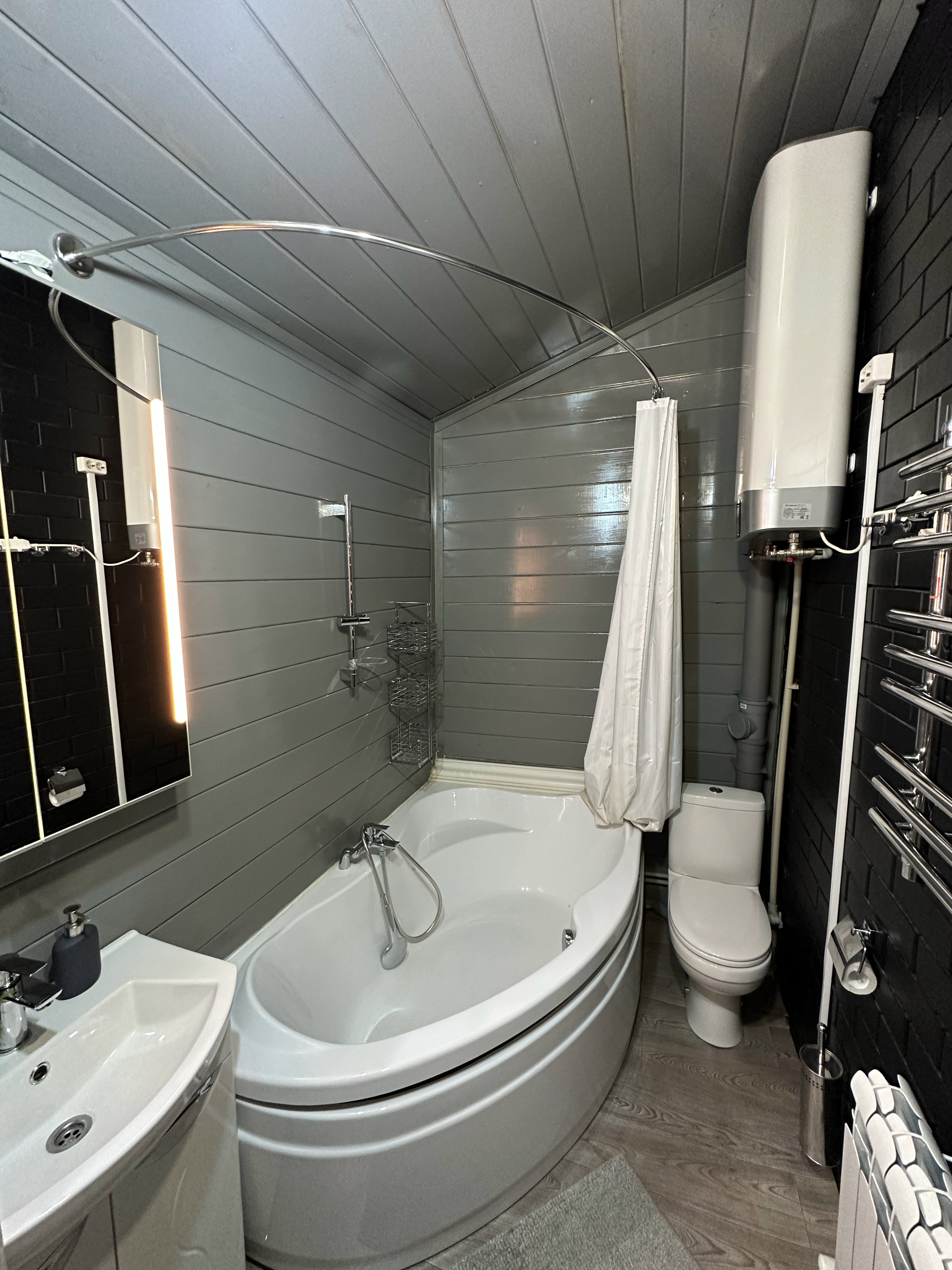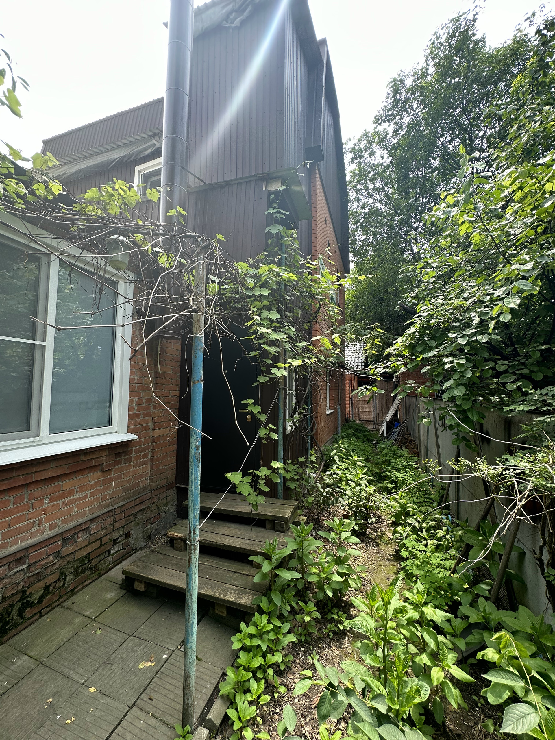 Свой отдельный двор и вход в дом, который состоим из двух частей  - 1 часть в одном уровне - 60 кВ.. и  2 часть в трёх уровнях - 80 кВ.м плюс 40 кВ.м мансардный этаж.