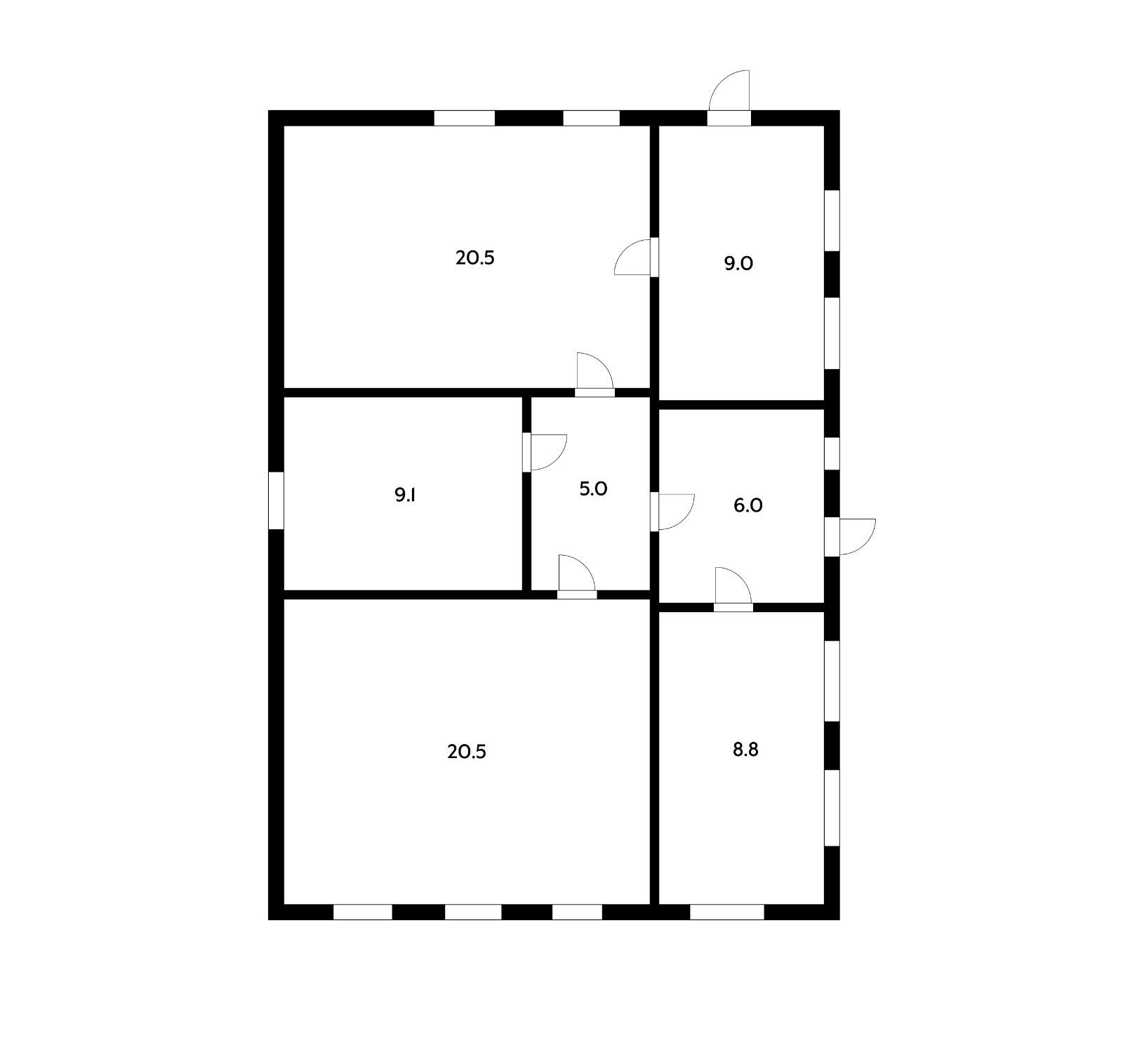 Кирпичный дом площадью 83 м2- три изолированные комнаты, кухня и санузел.