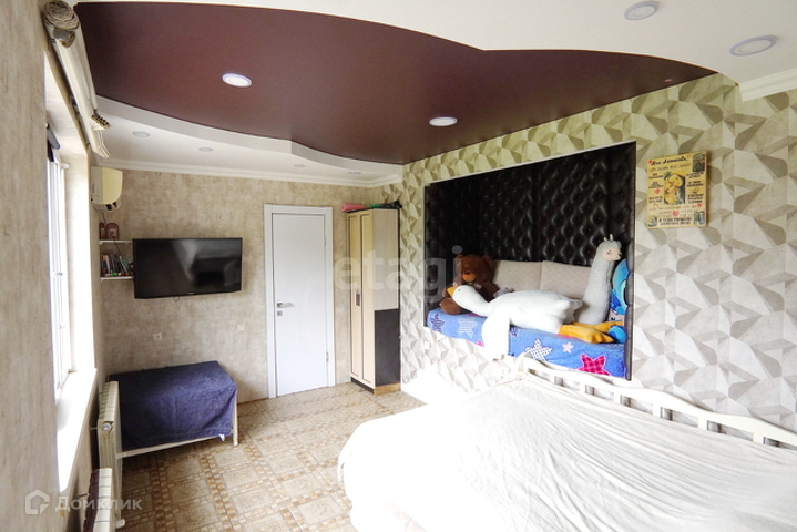 ремонт, для этого достаточно будет переклеить обои. Полы в комнатах теплые, уложены плиткой. Потолки многоуровневые, обшитые гипсокартоном и натяжным полотном. Светильники точечные встроенные. В санузле пол и стены облицованы плиткой, перегородка душевой сделана из современного материала – стеклоблоков. Сантехника вся установлена.
