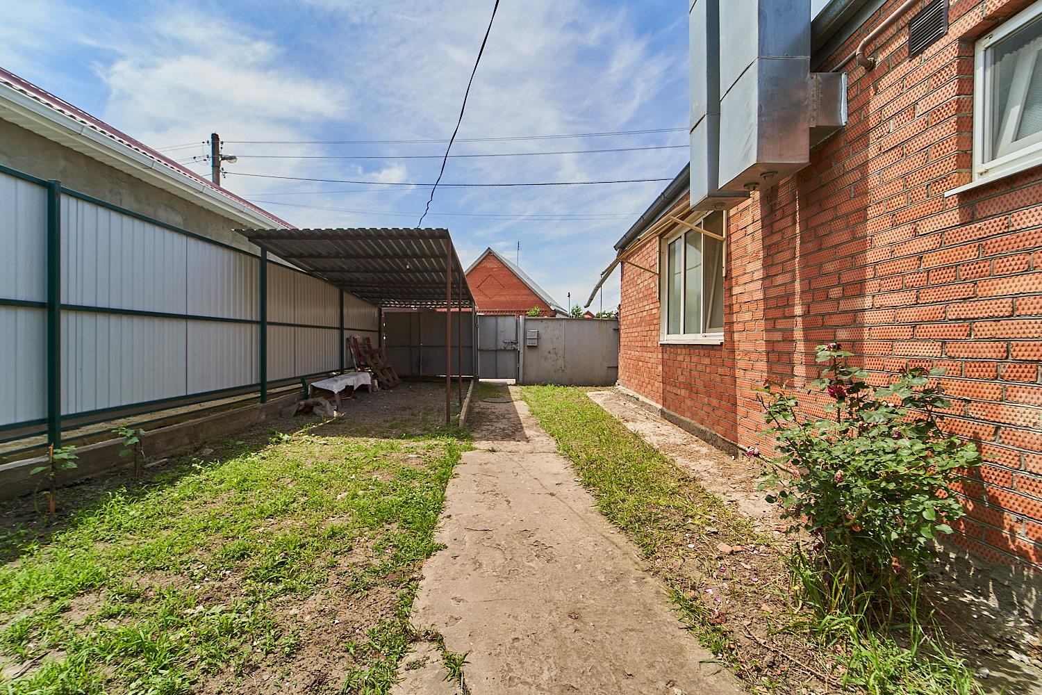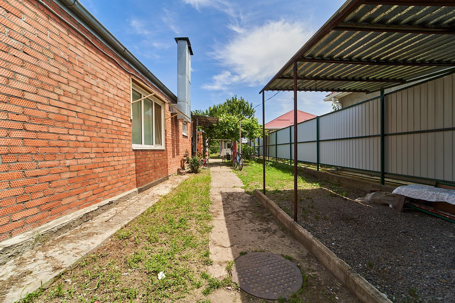 Двор просторный, оборудовано место для отдыха. Можно сделать навес, под который можно поставить три машины, так же перед домом есть парковочное место.