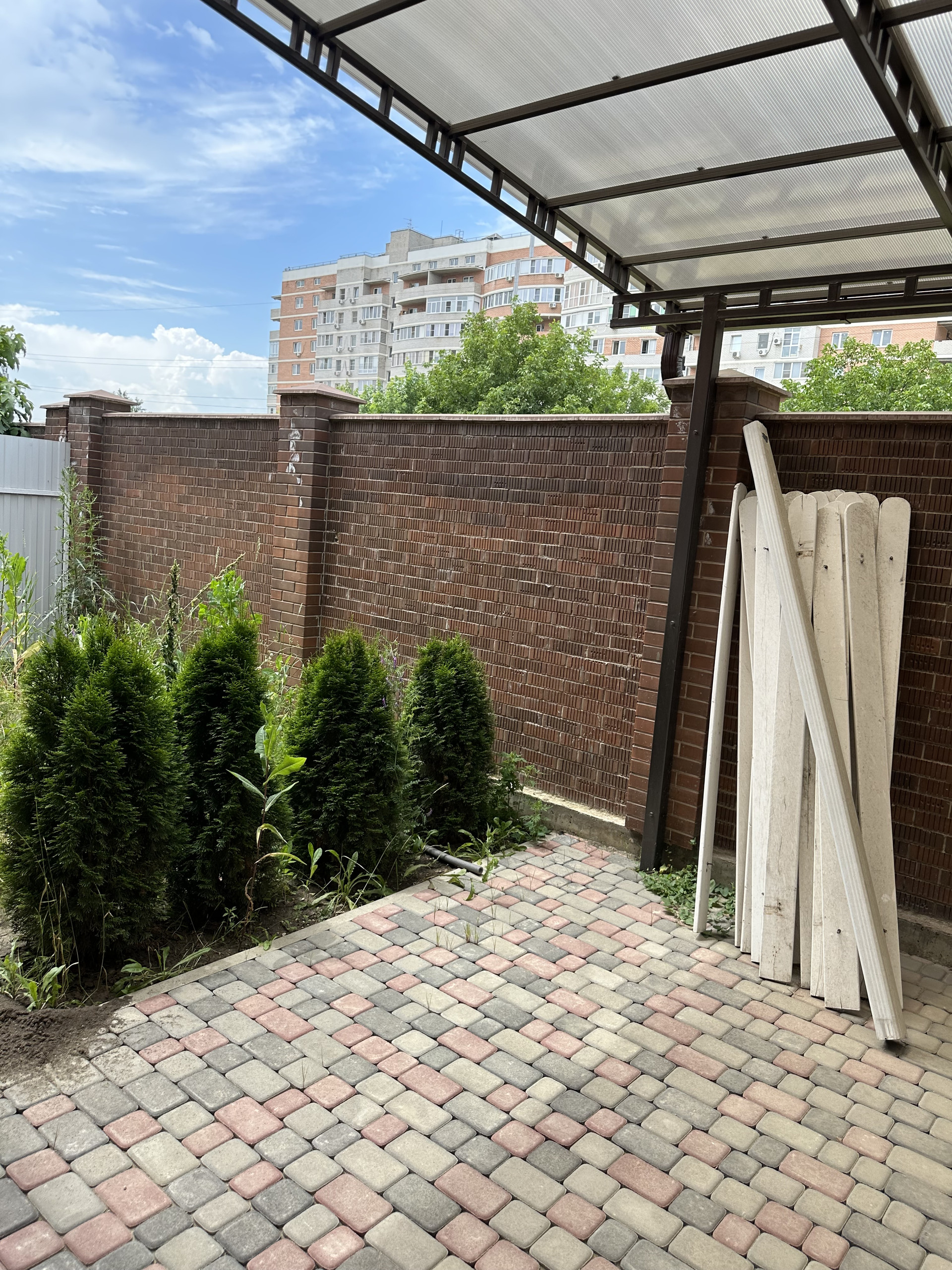 - сделан дополнительный навес из поликарбоната