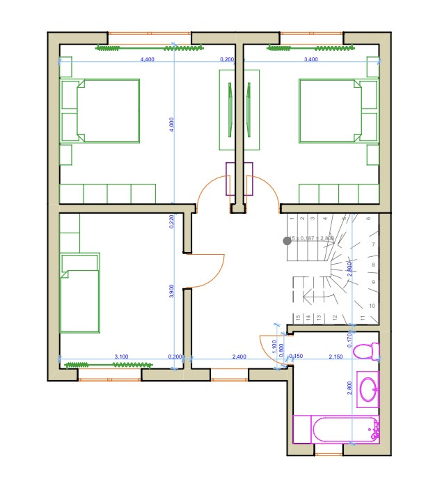 Спальни на втором этаже (3 спальни):