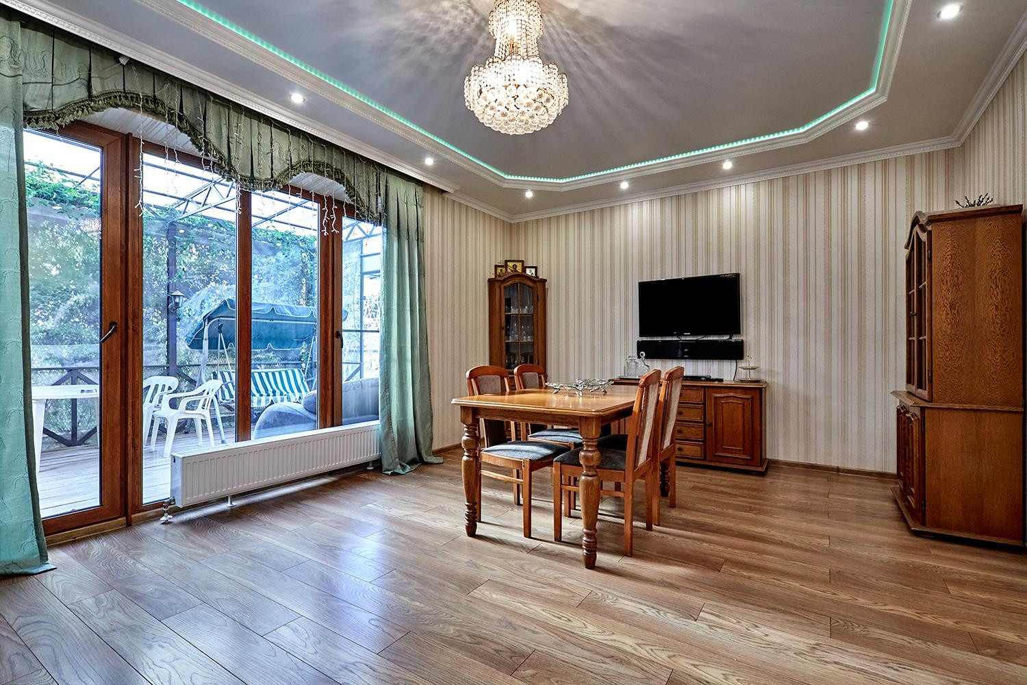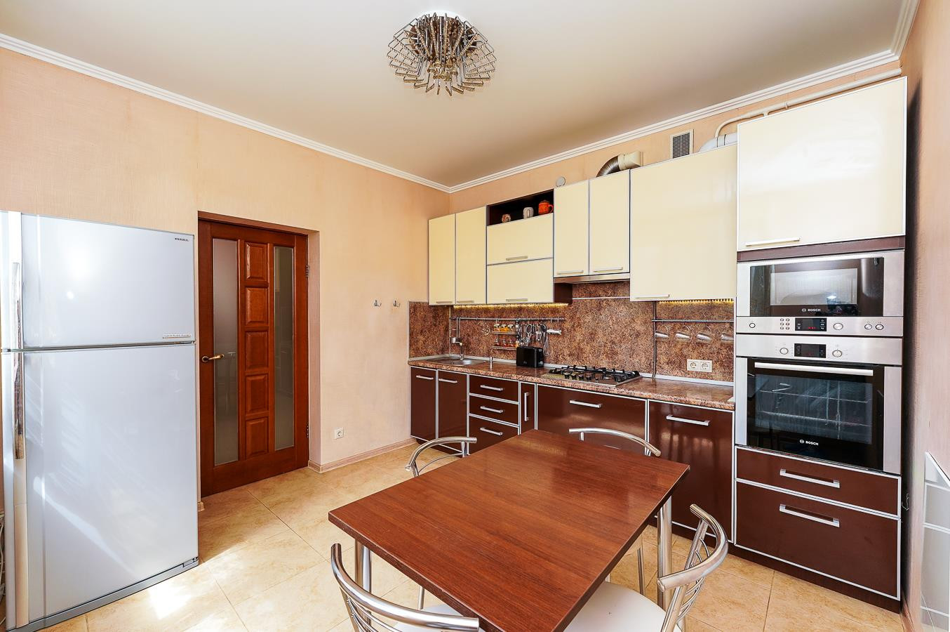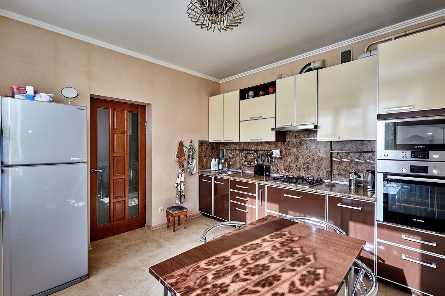 С/у кафель, полы ламинат, межкомнатные деревянные двери, многоуровневые подвесные натяжные потолки, точечный свет, сплит-системы.