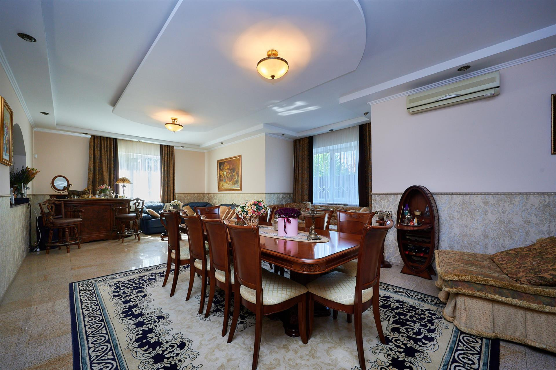 Продаётся большой дом - особняк, в хорошем районе города СМР, площадью 322/136/46 кв.м, в отличном состоянии. Дом в 4-х уровнях. В цокольном этаже 2 больших помещения (40 и 41 кв.м): жилая комната и помещение под спортзал. Вход в цокольный этаж и со двора, и из дома. На 1-м этаже: просторный холл, большая кухня-гостиная (13+46 кв.м), с выходом на застеклённую террасу, совмещённый сан/узел, h - 2,8 м, а также гараж 33 кв.м и котельная. На 3-м уровне: большая жилая комната 30 кв.м с выходом на балкон и рабочий кабинет; 4-й уровень: холл, две жилых комнаты с выходами на балкон, гардеробная, совмещённый сан/узел, h - 2,7 м. Видеонаблюдение, проводной интернет, сигнализация, охрана. Все коммуникации центральные, в т.ч. канализация, сетевой газ. При продаже дома частично остаётся мебель и бытовая техника, сплит-системы. Земельный участок ИЖС 10 сот., фасад 25 м, с ландшафтным дизайном. Также на участке находится комплекс отдыха площадью 100 кв.м, с шикарным бассейном, хамамом, душевой, сан/узлом, и всем необходимым - для полноценного отдыха. Во доре тротуарная плитка, въезд для нескольких авто, много зелени. Хорошая зона отчуждения перед участком. Отличное местоположение, достойные соседи, асфальтированная улица, вся необходимая инфраструктура в шаговой доступности, 350 м до р. Кубань.