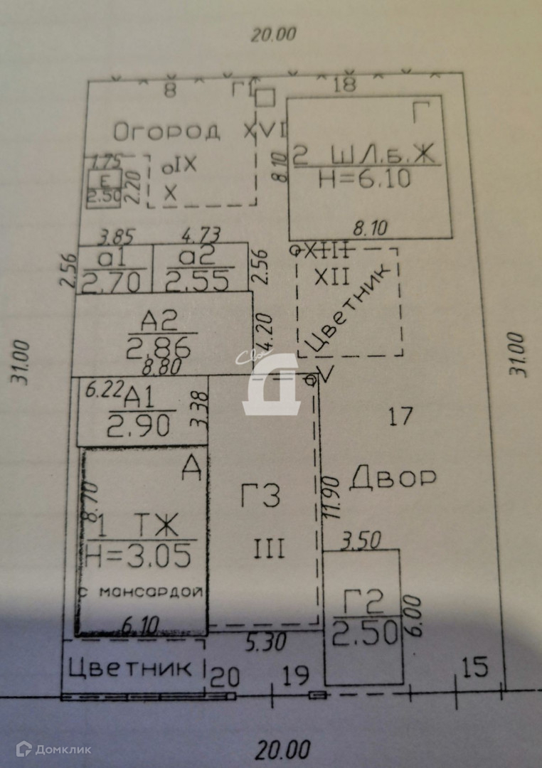 На участке капитальный гараж со въездом с улицы, выход из гаража во двор.