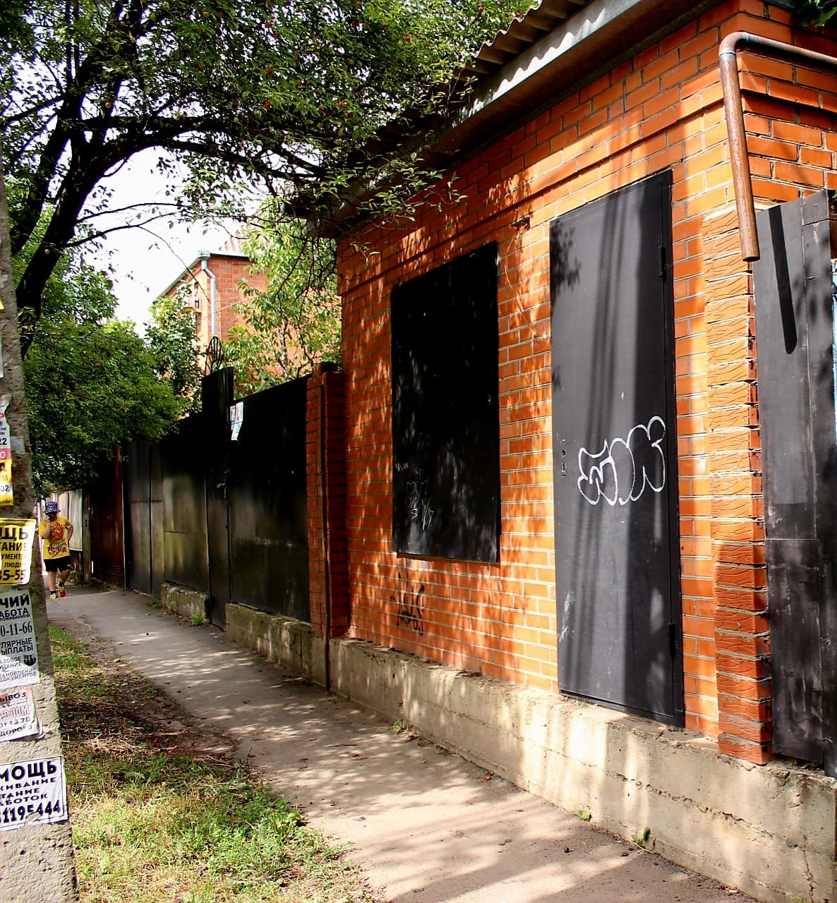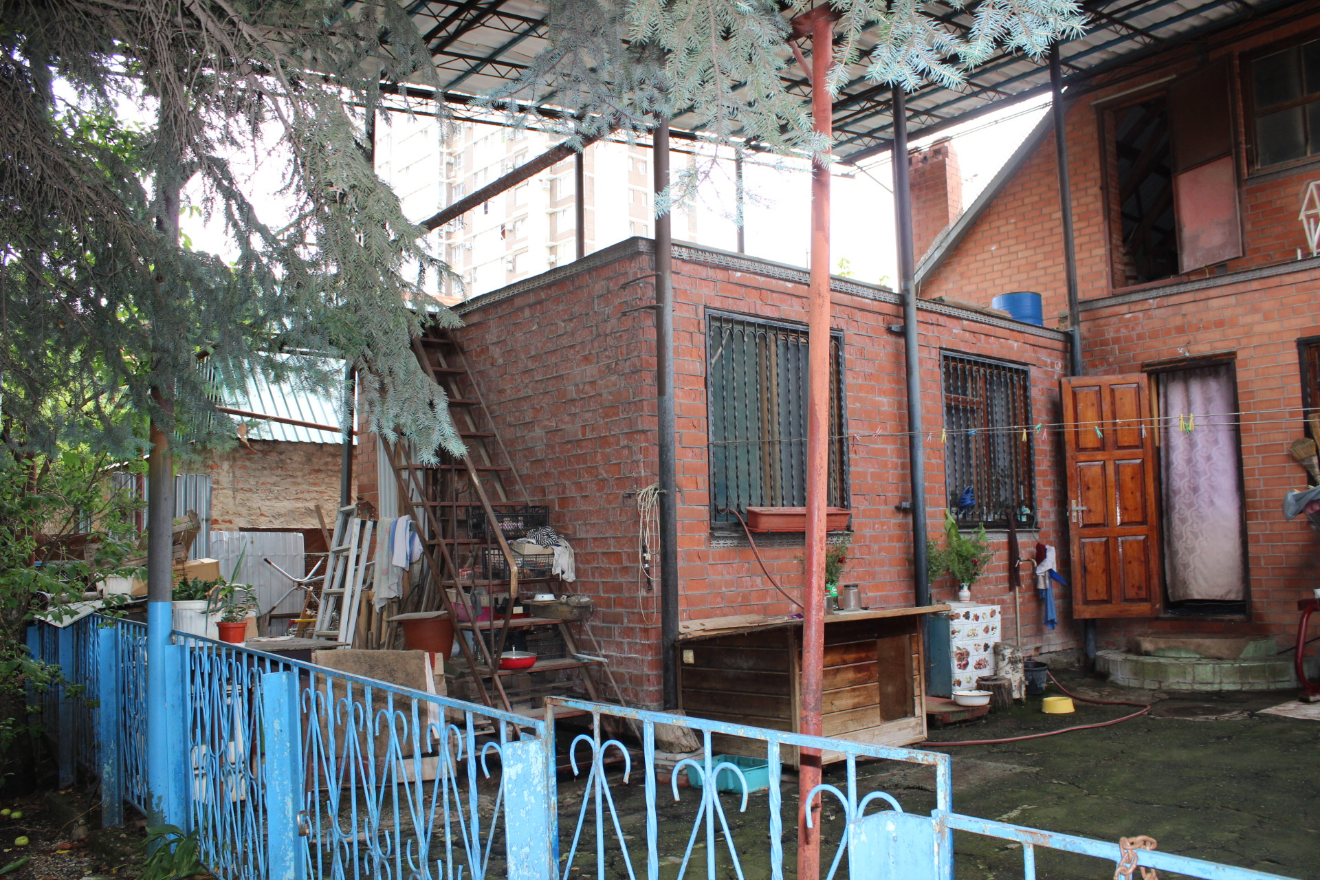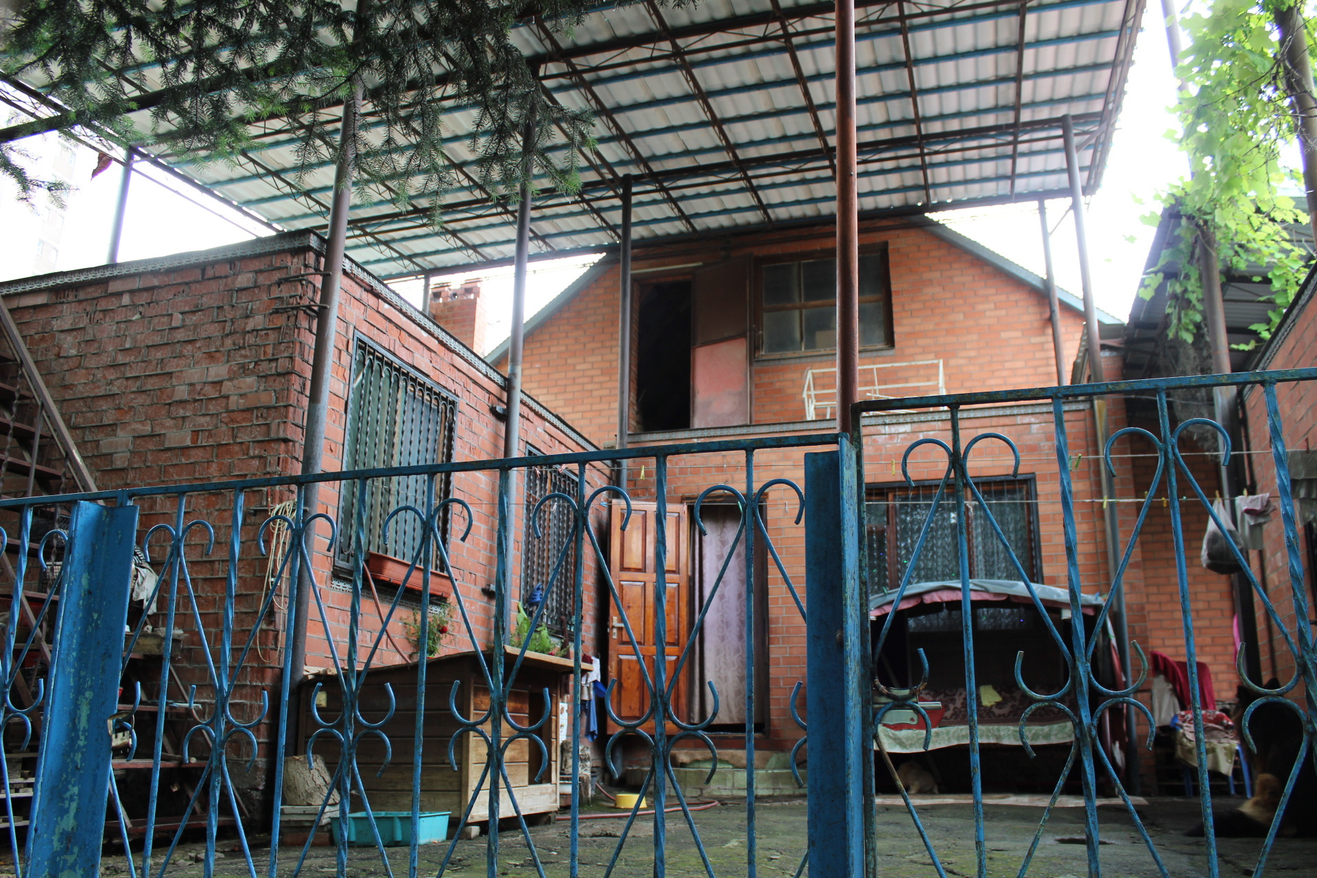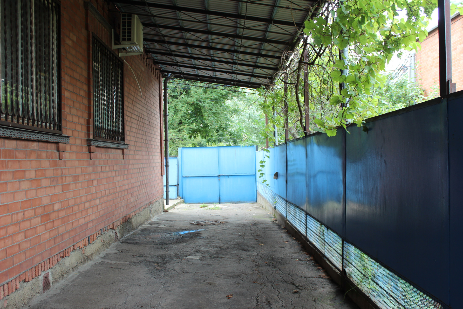 Во дворе 2 больших металлических навеса, забетонирован въезд под машину , сделаны отмостки, гараж , небольшое здание с выходом на улицу можно использовать под магазин или шиномонтаж ( земля в собственности, поэтому коммерцию оформлять не понадобится).  Так же за домом есть участок земли с плодовыми деревьями.