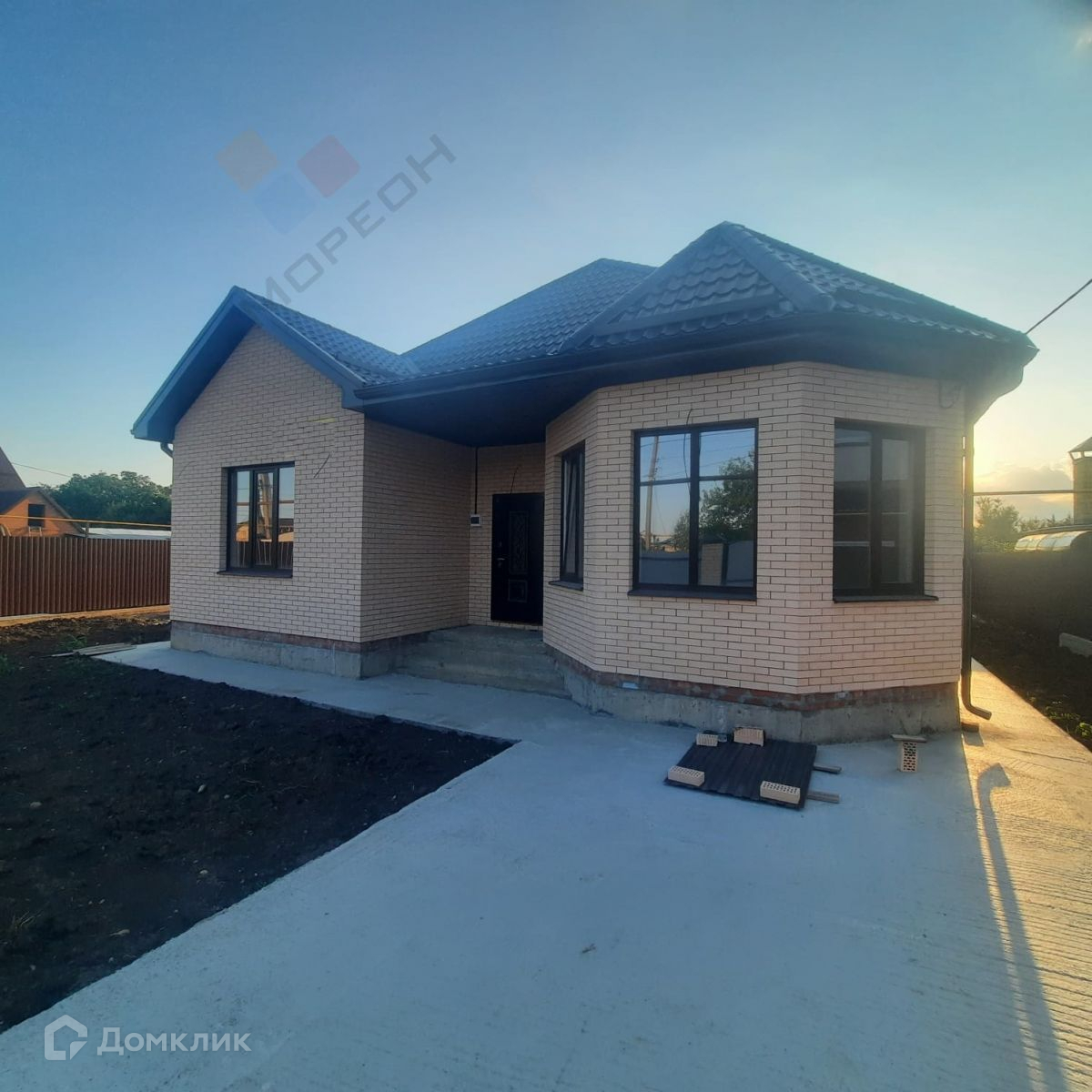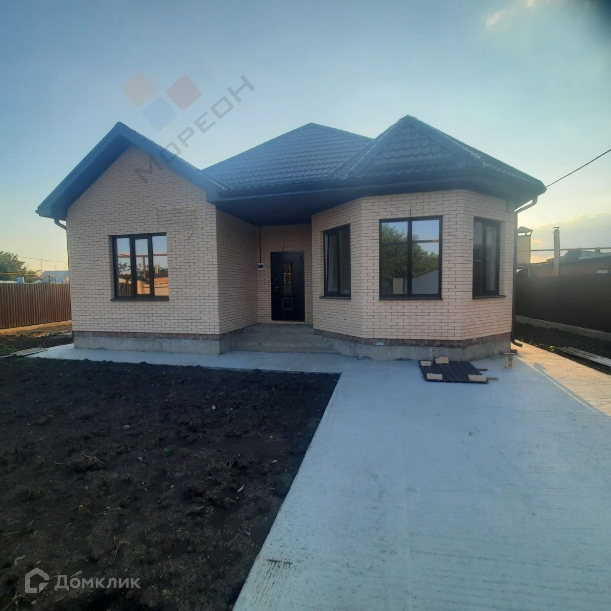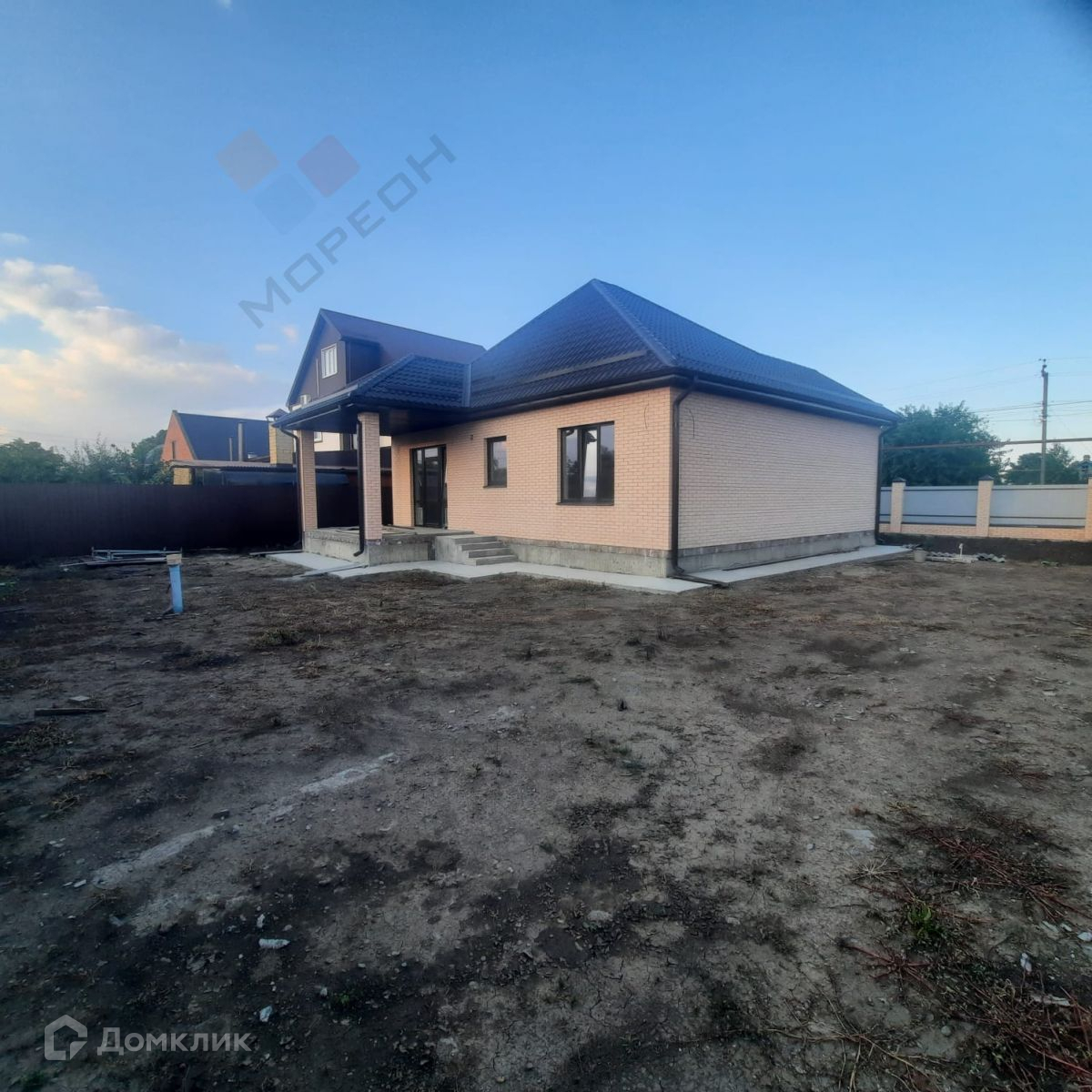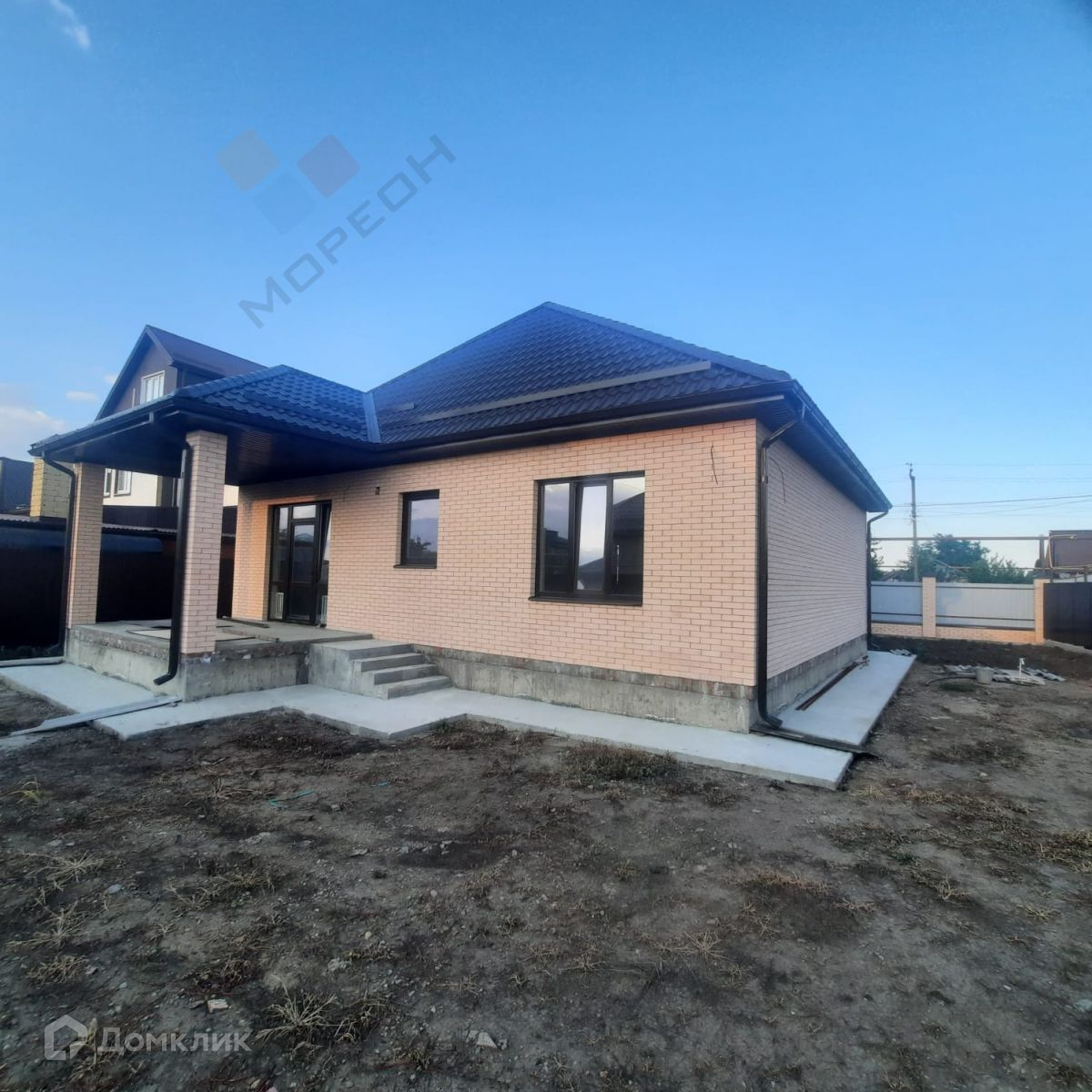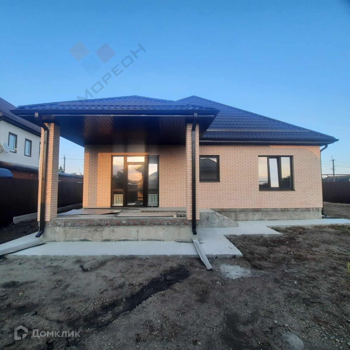 Продается 1-этажный кирпичный дом площадью 120 кв. м. есть терраса, на участке 6 соток. В доме расположены 3 просторные спальни (одна из которых мастер-спальня), кухня-гостиная. Есть централизованная вода, электричество. Крыша выполнена с возможностью под мансарду. Дом выложен снаружи керамическим кирпичом. Проведена проводка и сделана предчистовая  отделка хорошие стеклопакеты. Дом с газом возможна ипотека Звоните.Номер объекта: #150/1417110/3069
