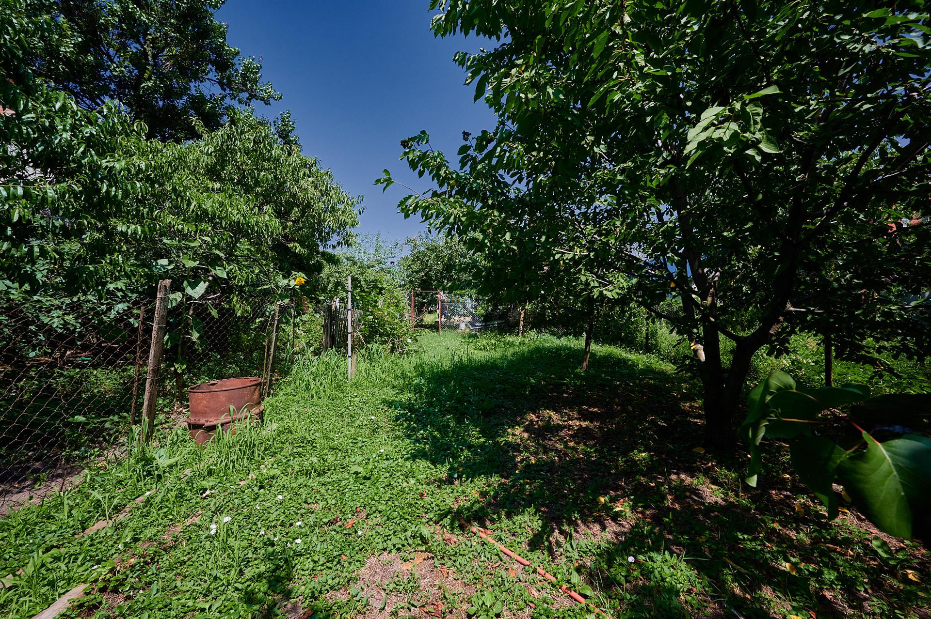 За домом площадка - можно поставить беседку с зоной барбекю или пристроить еще жилую комнату. На участке есть молодой плодоносящий сад.
