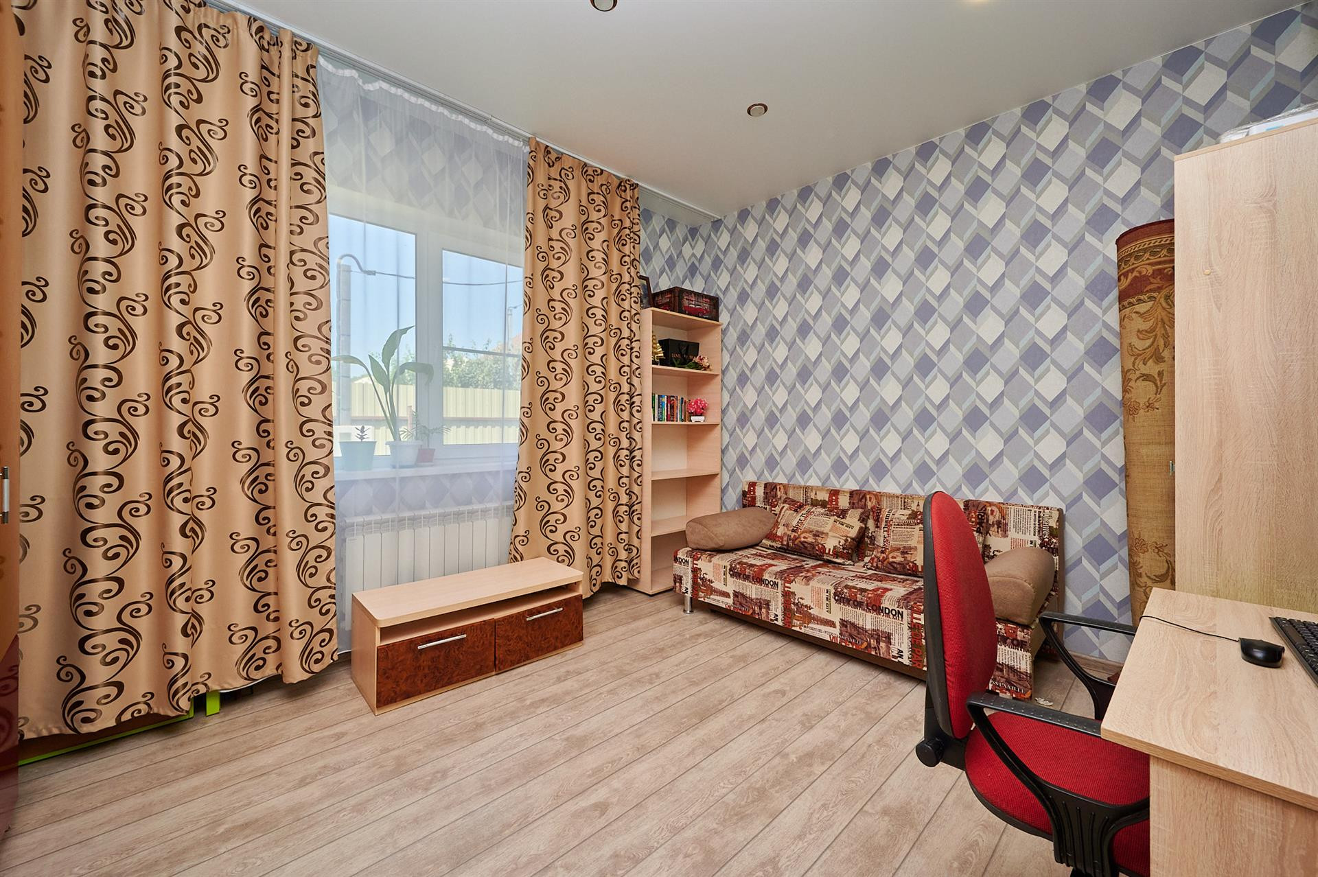 Газ проходит по меже, подключение будет стоить 150 тыс рублей, но это не требуется - дом очень теплый, зимой расходы на отопление не превышают 8 тысяч.