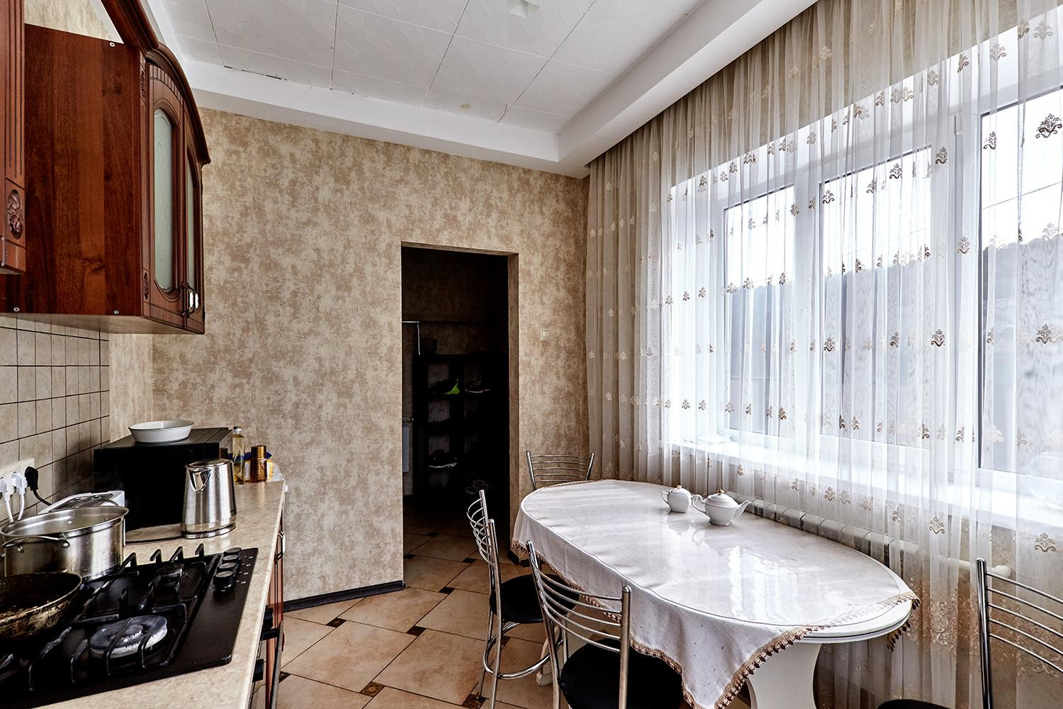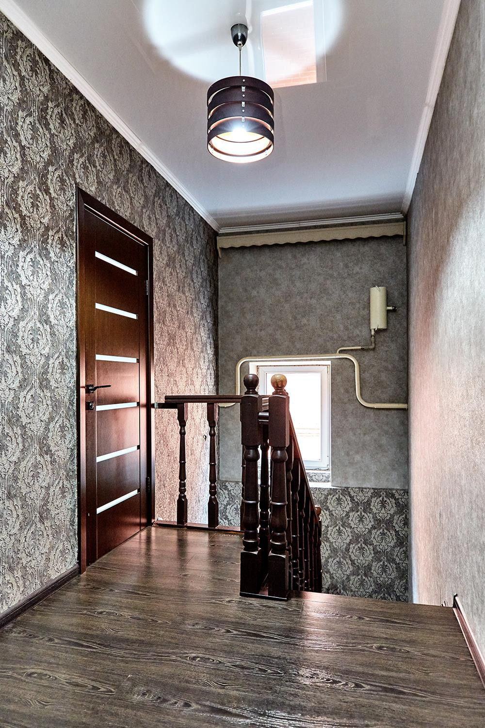 Дом монолитно-кирпичный, в два этажа. На первом этаже дома кухня, большая гостиная, комната и санузел. На втором этаже 4 большие комнаты. Все коммуникации центральные (газ, вода, свет), канализация - септик.