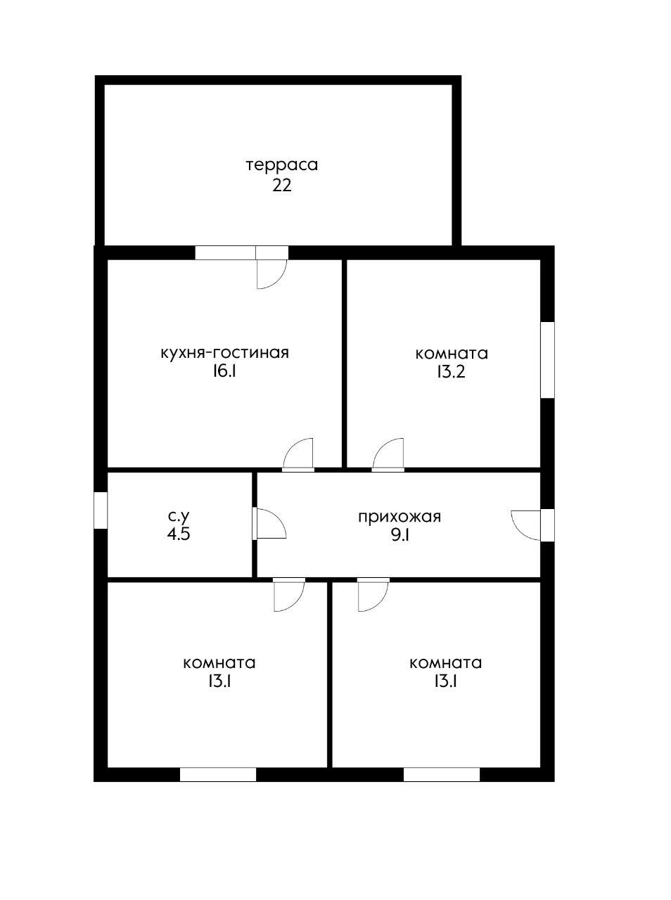 Общая площадь 91 м2