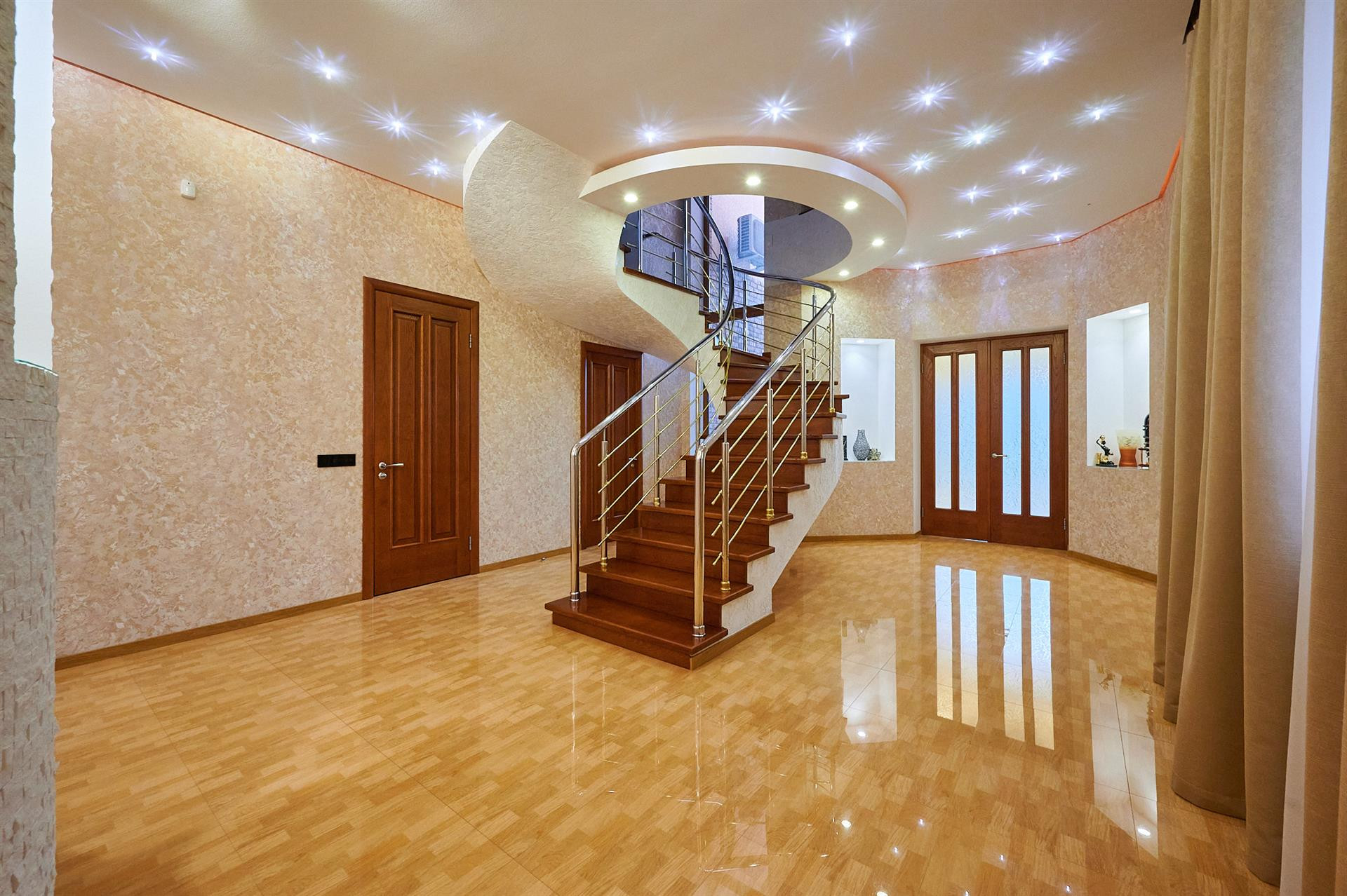 В доме установлена приточно-вытяжная рекуперативная вентиляция, выполнена гидроизоляция и утепление всех стен и крыши. Автоматический генератор тока и стабилизаторы напряжения, теплые полы, и система антиобледенения входных ступеней.