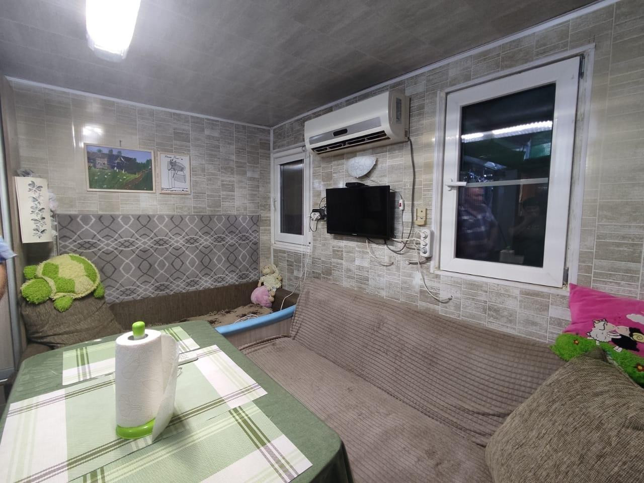 Состояние дома - заходи и живи. В доме 2 комнаты, кухня, санузел, прихожая, столовая. Сделан качественный ремонт. Во дворе гостевой домик- большая комната, кухня, санузел. Двор бетонирован, полностью закрыт навесом, используется как пространство для отдыха. Также есть летний душ, туалет, мастерская, кладовые.