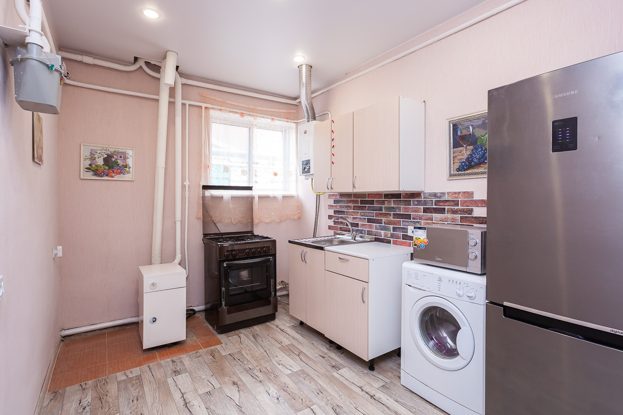 В доме одна большая жилая комната 22 м2, кухня 8,5 м2, совместный санузел и прихожая, есть сухой подвал и сарай. Отапливается газовым котлом, горячая вода нагревается автоматической газовой колонкой. Коммуникации все центральные. При продаже дома остаётся всё, что на фото. Придомовая территория позволяет организовать зону отдыха. Хорошие соседи.