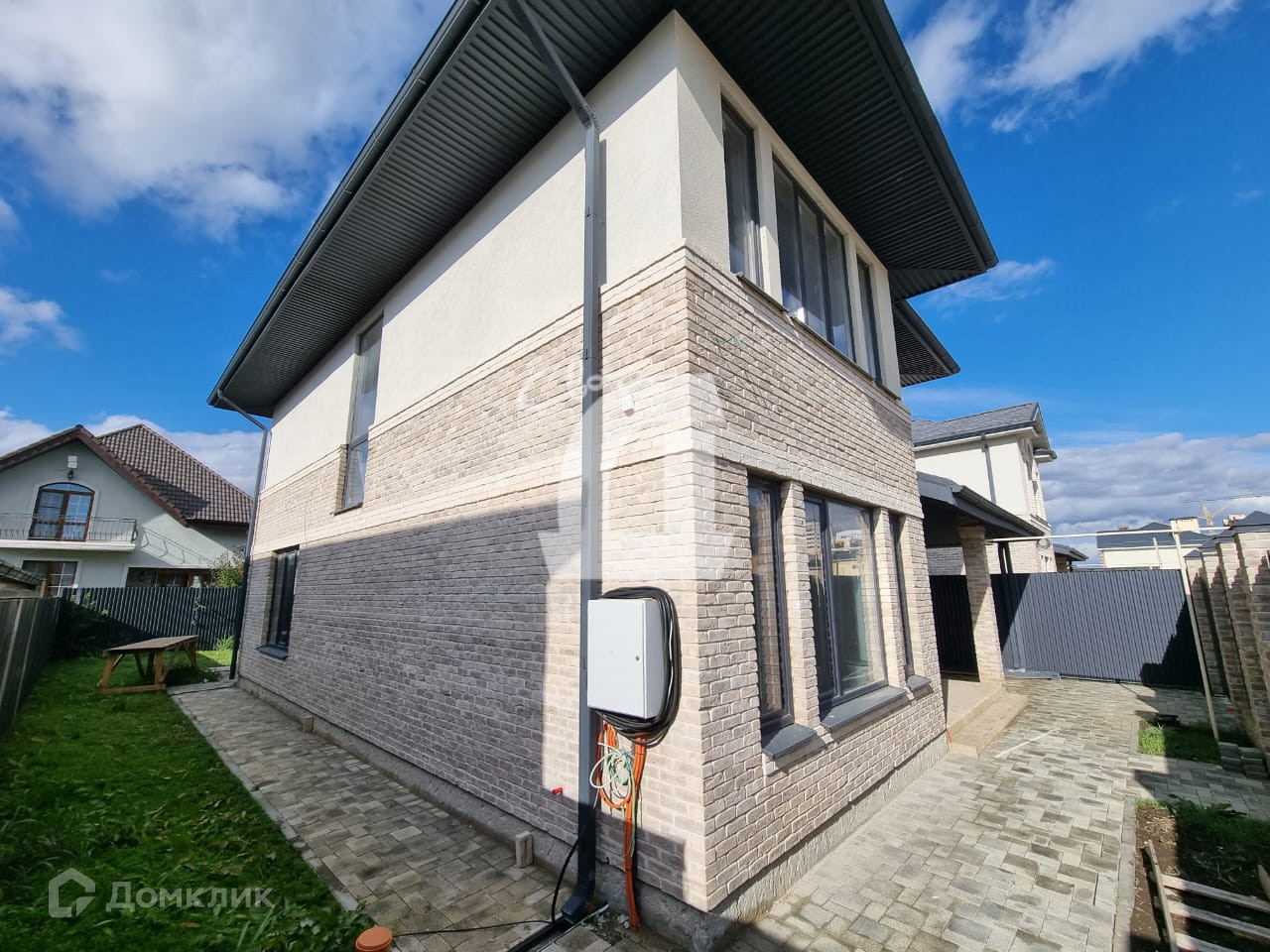 В доме 2 этажа,  комнаты, кабинет, кухня-столовая-гостиная с выходом на террасу,  гардеробные,  санузел. В поселке прогулочная зона, детские и спортивные площадки. Удобный быстрый выезд на дорогу.