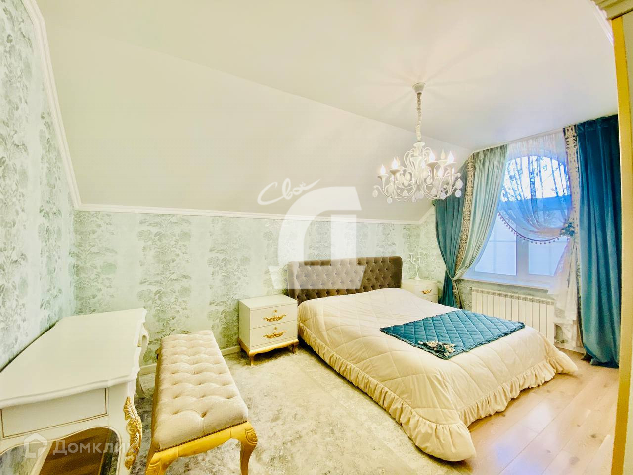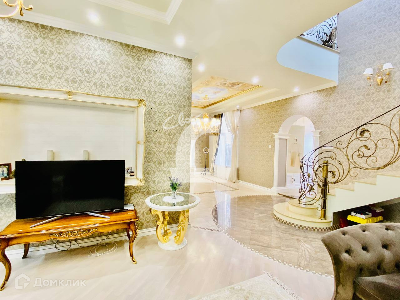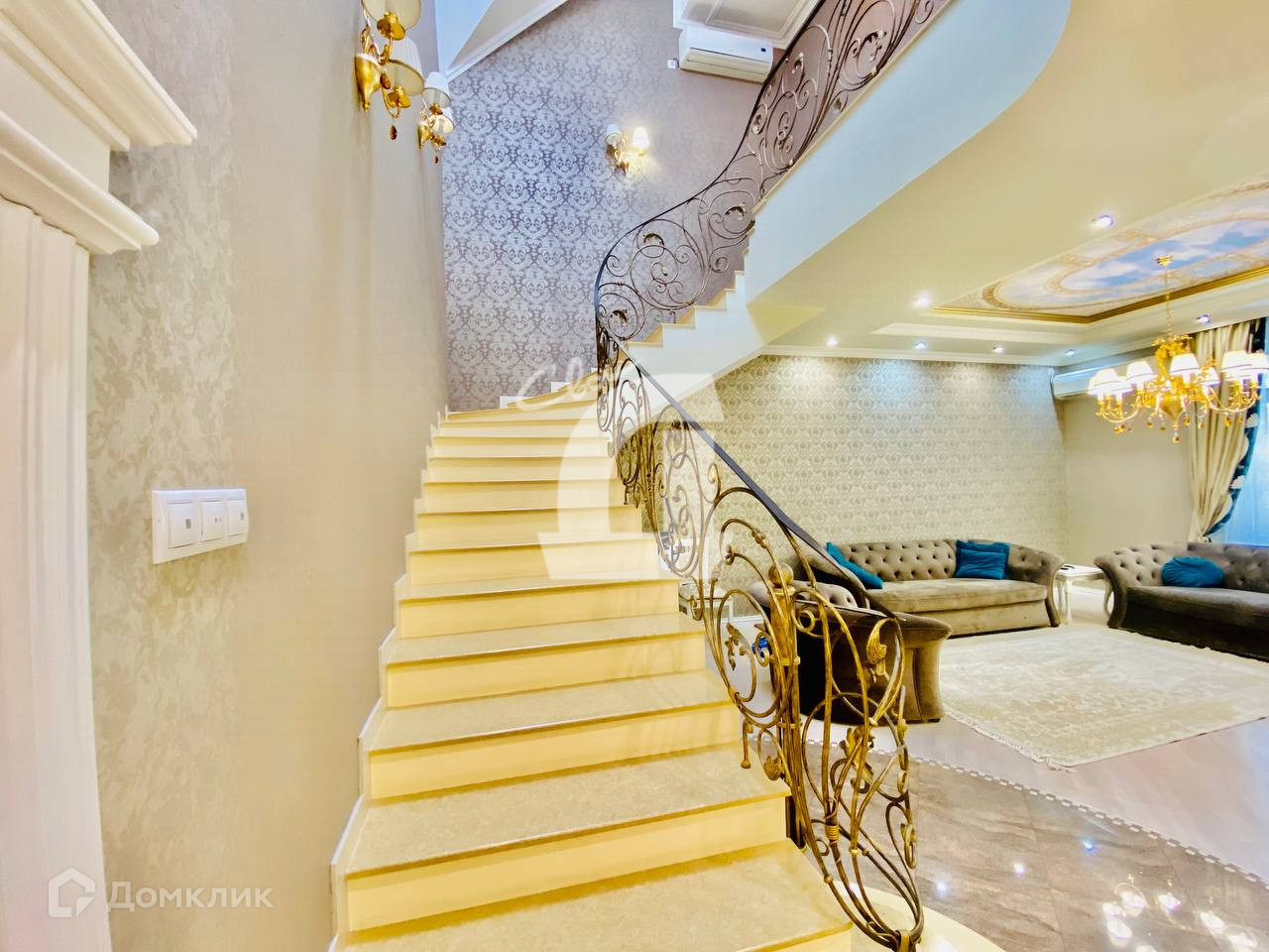 Выполнен дорогостоящий ремонт: дизайнерские обои и декоративная штукатурка на стенах, итальянская плитка на полу, качественная мебель, кованная лестница и люстры - всё это позволяет наслаждаться изысканностью каждый день.