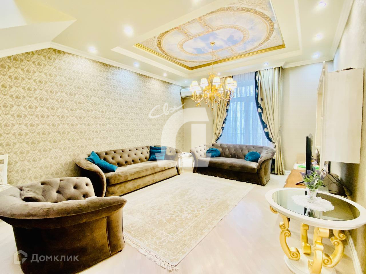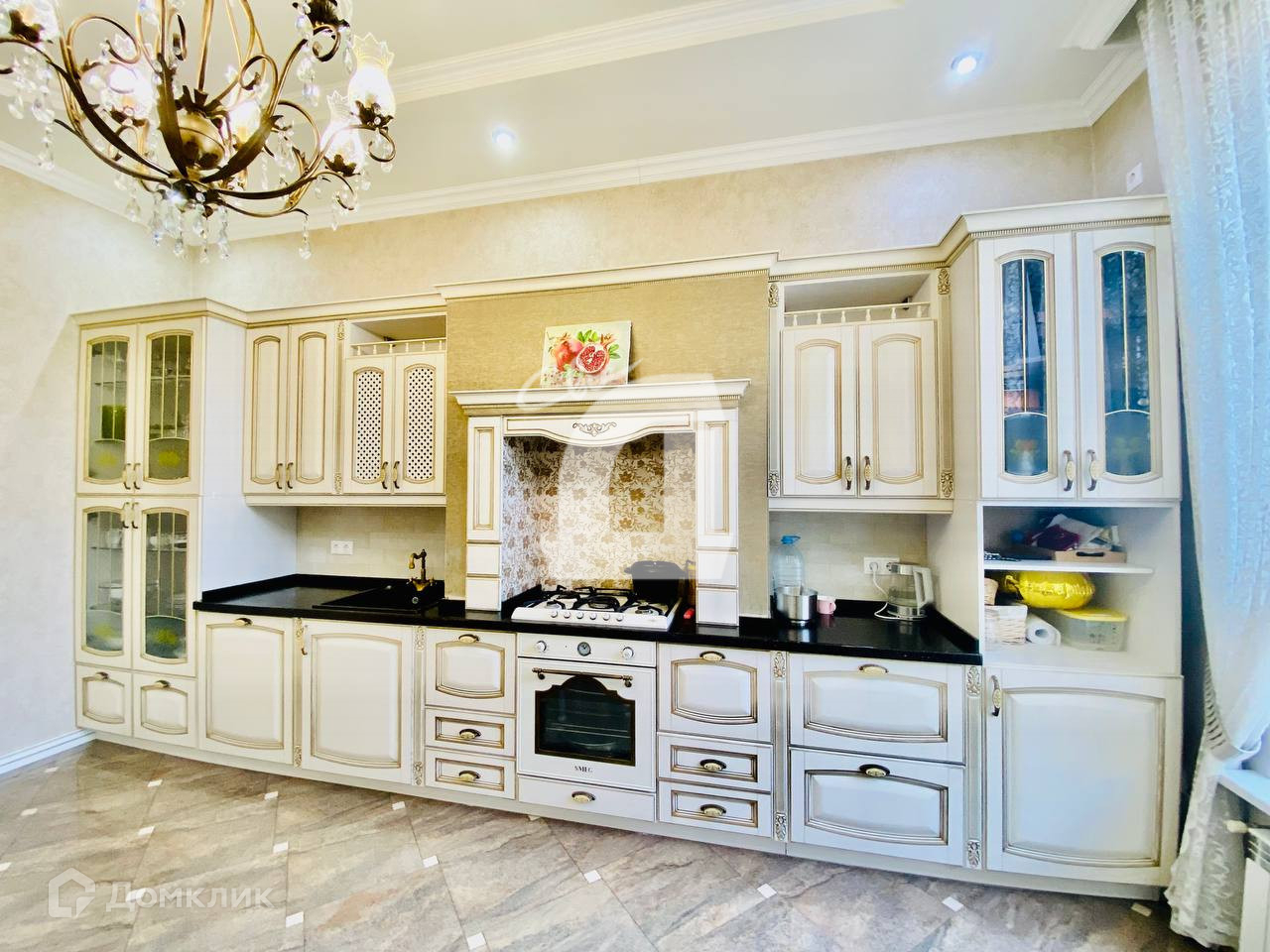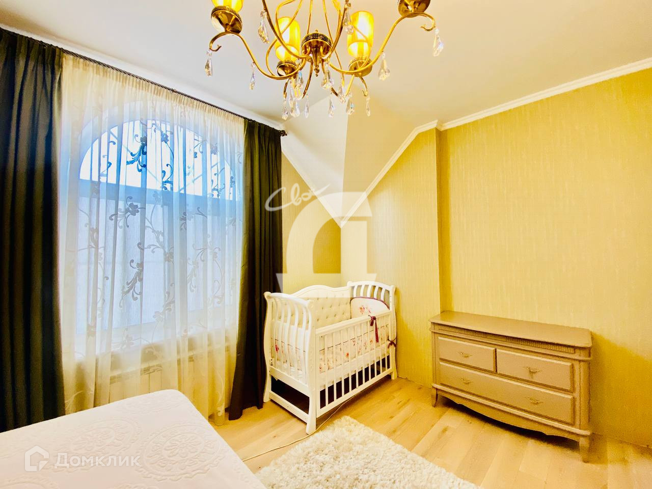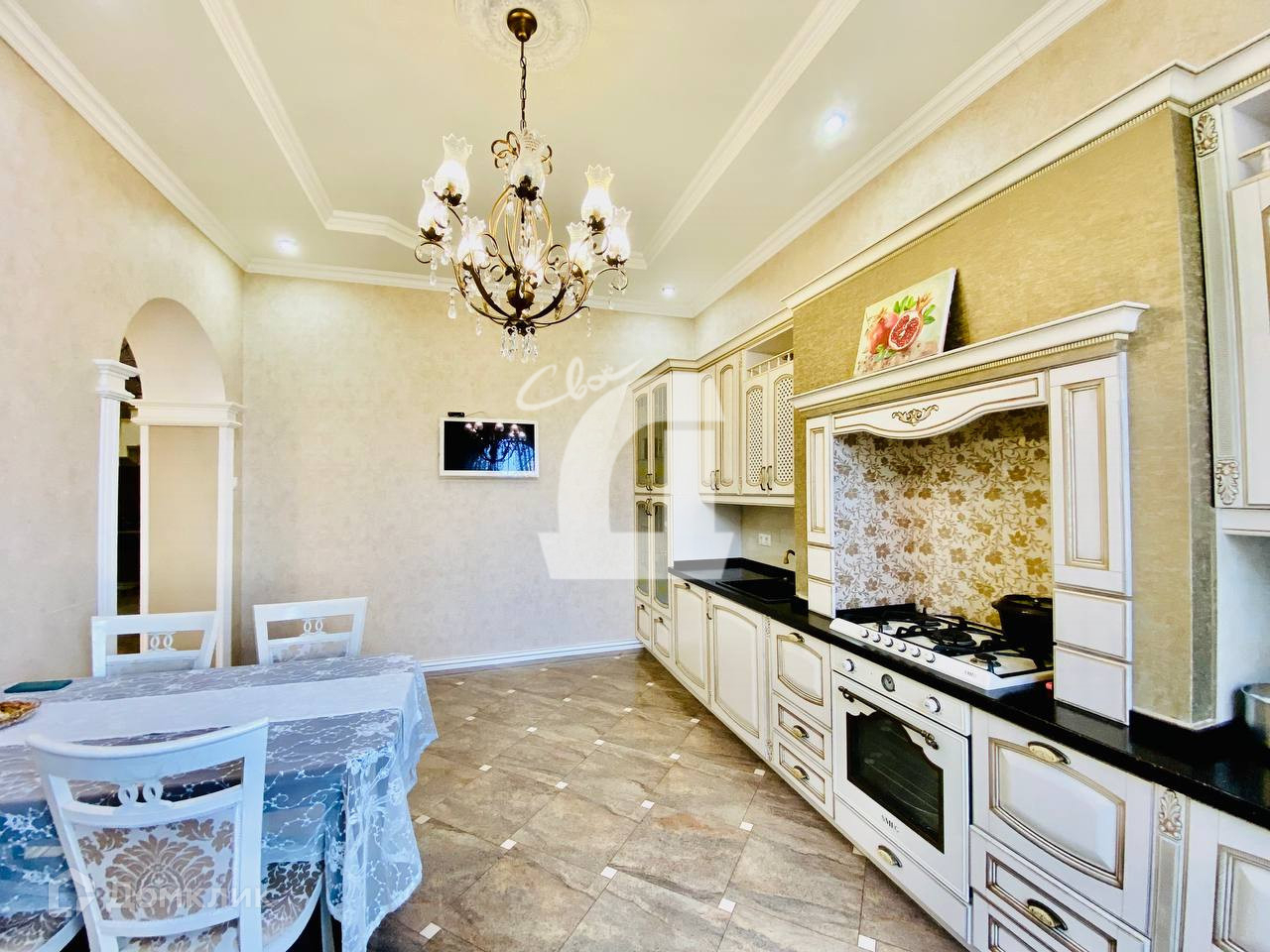 Выполнен дорогостоящий ремонт: дизайнерские обои и декоративная штукатурка на стенах, итальянская плитка на полу, качественная мебель, кованная лестница и люстры - всё это позволяет наслаждаться изысканностью каждый день.