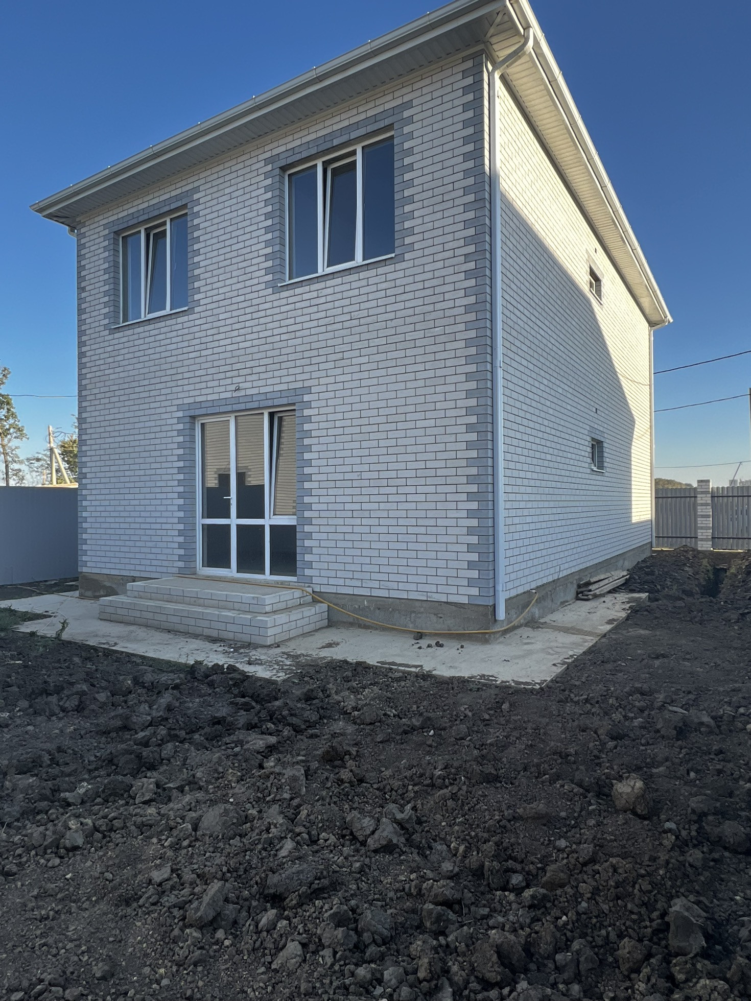 Во дворе забетонирована отмостка, дорожки, парковочное место. Автоматические ворота, калитка, забор по периметру.