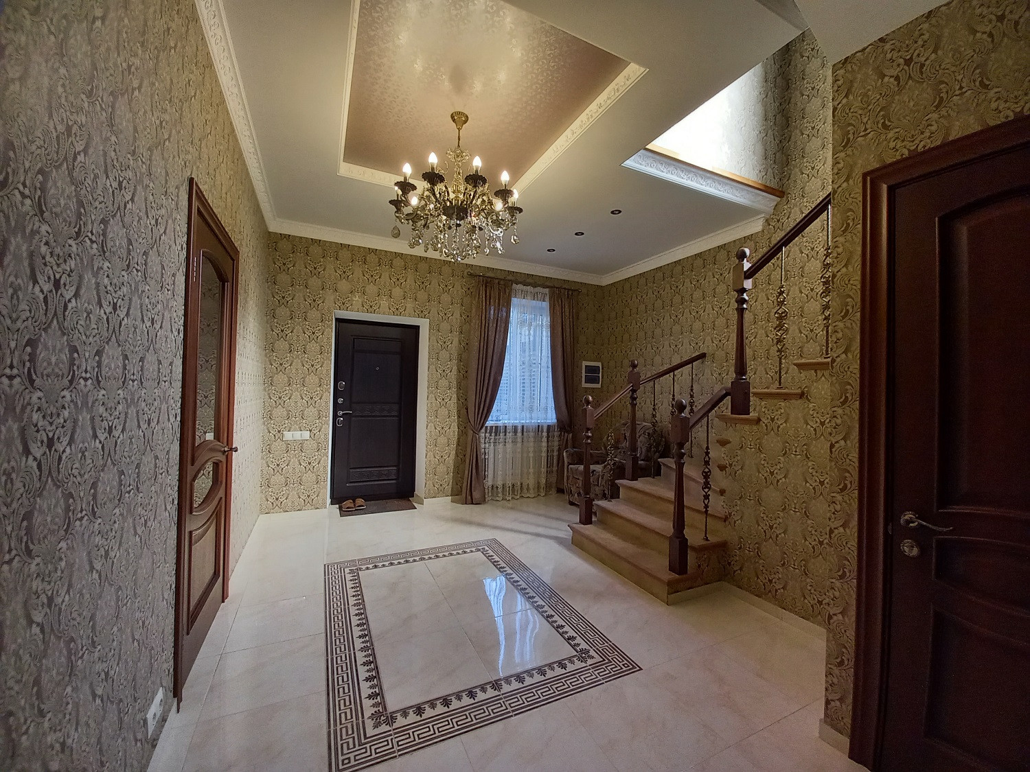 В доме имеется шикарная прихожая с красивой лестницей, большая кухня-столовая, зал с настоящим камином, три просторных изолированных спальни, два санузла, выход на балкон, подвал для хранения, котельная, скоростной интернет. Эксклюзивный фасад дома, стильный дизайн внутри делают его изысканным и неповторимым. Во дворе кирпичная беседка с зоной барбекю для отдыха как на природе, место для парковки двух автомобилей с автоматическими воротами,