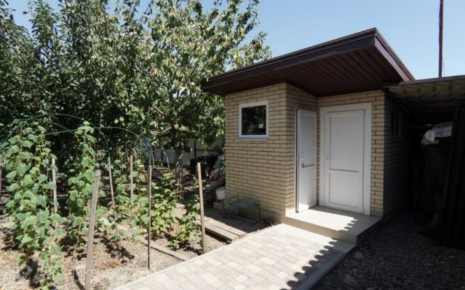Фасад – 26,51. Двор огорожен кирпичными столбами и евроштакетником, ворота роллетные. Участок вымощен плиткой. Сделан навес вдоль всего дома. Построен хоз.блок для душевой и туалета. Двор ухоженный с садом и огородом, растут: нектарин, инжир, слива, яблоня, черешня, абрикос, малина.