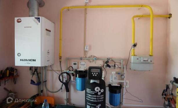 Дом газифицирован. Все коммуникации в котельной, вход в которую со двора. В комнатах установлены металлические радиаторы. Сделаны выводы под камин. Во дворе предусмотрена скважина глубиной 33 м. Септик – 21 куб.м. Электричество мощностью 15кВт. Установлена спутниковая антенна МТС. Коммунальные платежи летом – 2000 руб., зимой – 4800 руб.
