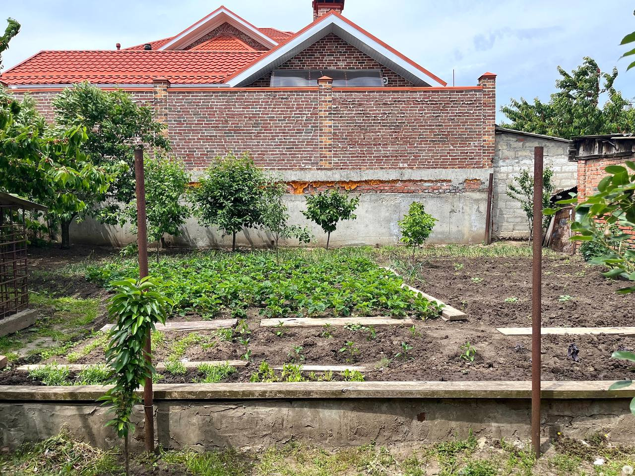 Продается дом с земельным участком в удобной локации. Площадь участка -  5,22 сотки, участок правильной формы 12,55 x 41.50 м. Площадь дома – 114,1 м2, имеется подвал площадью 25,1 м2. Фундамент дома залит с выдержкой всех строительных норм размером 13,5 х 10,5 м под 2 этажа, но построен 1 этаж. Все удобства для проживания имеются, можно зайти и жить, дополнительно сделав косметический ремонт и обустроив территорию на свой вкус. Забор на фасаде участка кирпичный, высокий.