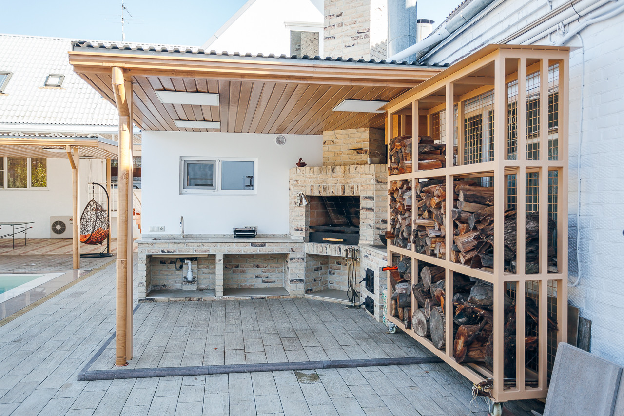 Ухоженная территория с ландшафтным дизайном, бассейн c дорогим оборудованием, двор выложен плиткой - всё лучшего качества.