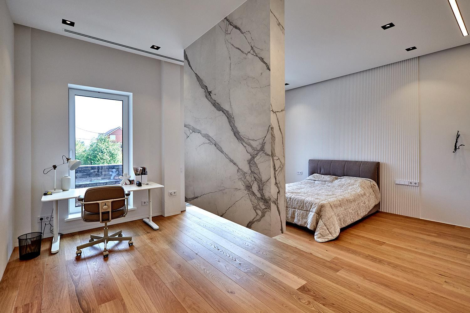 На втором этаже 2 спальни с выходами на отдельные террасы, гардеробная, гостевая спальня и просторная терраса 42,3 метра.