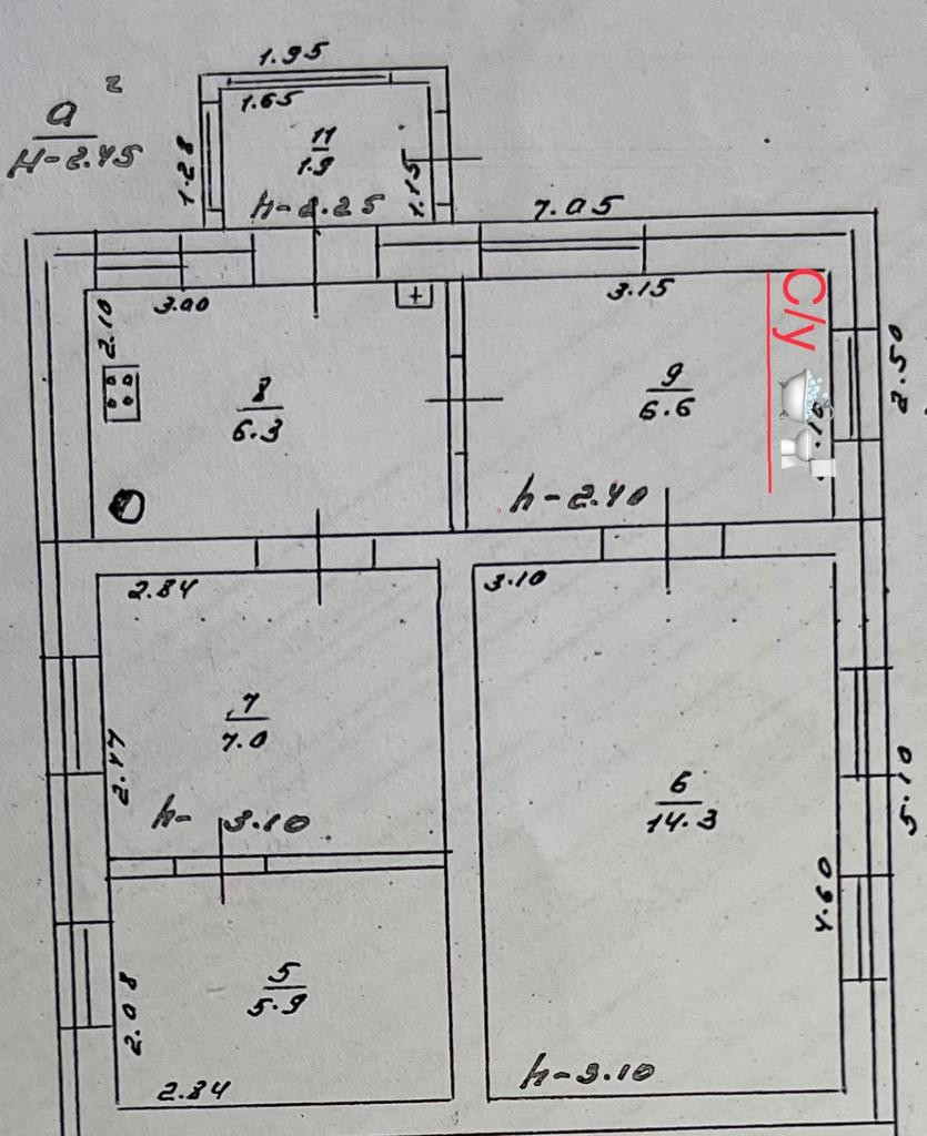 Санузел, кухня 12 м2, коридор 2 м2