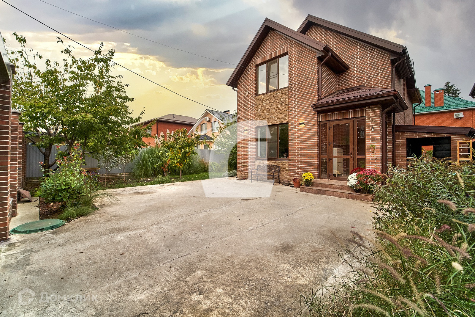 Во дворе парковка на два машиноместа, автоматические ворота. Для видеонаблюдения подготовлена проводка и оснащение, но не было необходимости в этом.