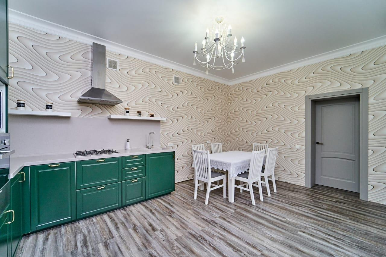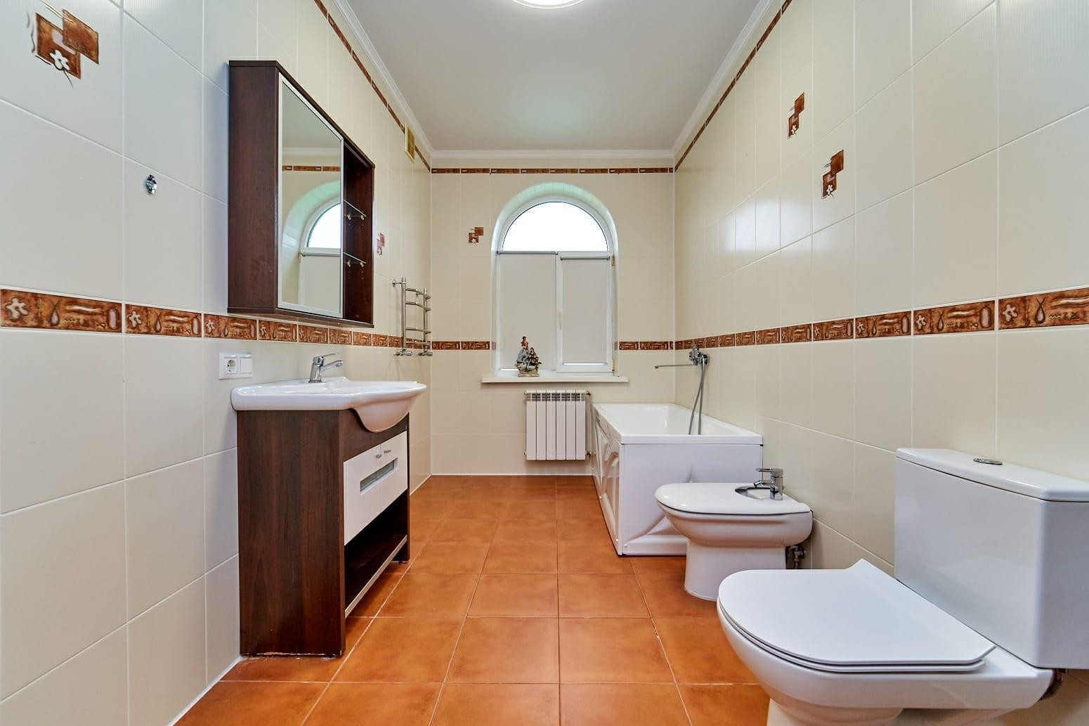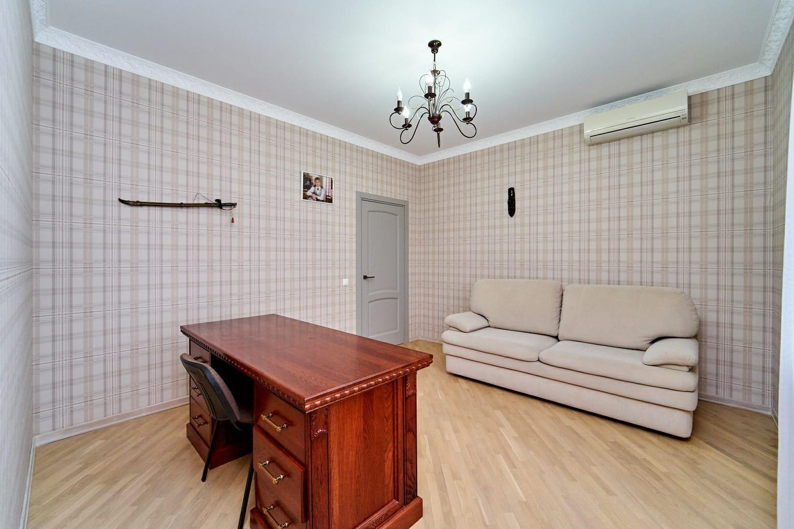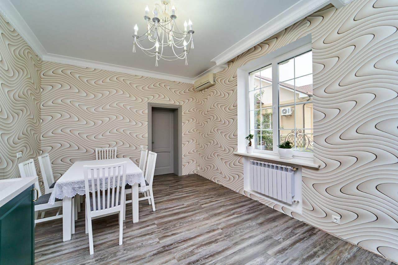 На первом этаже просторная прихожая, гостиная с панорамным остеклением, кухня-столовая, комната для гостей и санузел. Поднимаясь на второй этаж Вы можете попасть в четыре спальни в каждой из которых есть гардеробная и также на этаже находится просторный санузел. Ремонт в доме сделан из качественных материалов, остаётся вся мебель и техника. Большие окна во всех комнатах и естественное освещение, позволяют экономить на электроэнергии.
