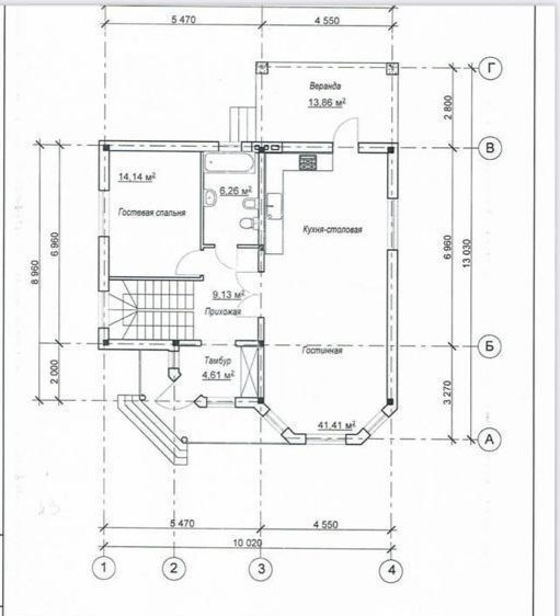 Дом общей площадью 165 кв.м современной планировки: тамбур, прихожая 9,13 кв.м, гостевая спальня 14,14 кв.м, санузел 6,26 кв.м, просторная кухня-гостиная 41,41 кв.м с выходом на крытую террасу 14 кв.м.