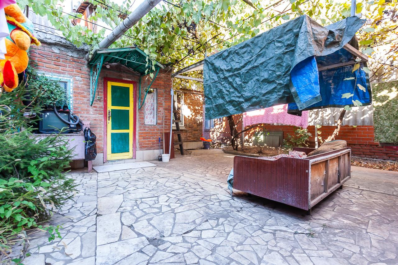 Отличное расположение дома. Участок большой, есть времянка, сдается в аренду. В доме 2 комнаты, одна гостиная 20 метров вторая комната -спальня 12 метров. комнаты смежные, вход в спальню через зал. Есть времянка 20 м со своим санузлом и кухней.  Месторасположение дома очень хорошее. Есть насаждения: виноград, другие деревья. (1012/682127)