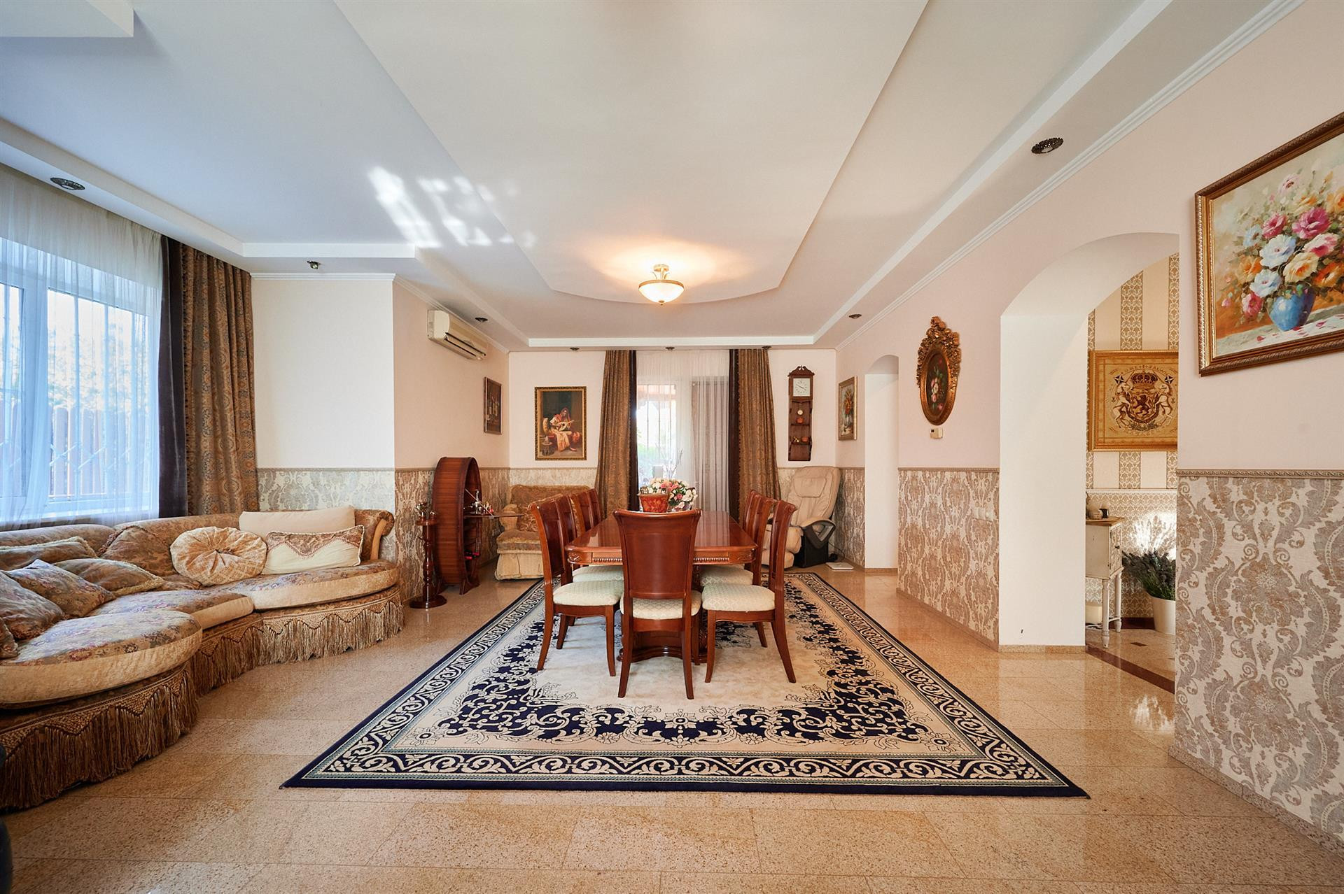 Продаётся жилой дом - особняк, в престижном районе города, площадью 322/136/46 кв.м, в отличном состоянии. Дом в 4-х уровнях. В цокольном этаже 2 больших помещения (40 и 41 кв.м): жилая комната (кинотеатр) и спортзал. Попасть в цокольный этаж можно как со двора, так и из дома. На 1-м этаже: просторный холл, большая кухня-гостиная (13+46 кв.м), с выходом на застеклённую террасу, совмещённый сан/узел, h - 2,8 м, а также гараж 33 кв.м и котельная. На 3-м уровне: большая жилая комната 30 кв.м с выходом на балкон и рабочий кабинет; 4-й уровень: холл, две жилых комнаты с выходами на балкон, гардеробная, совмещённый сан/узел, h - 2,7 м. Видеонаблюдение, проводной интернет, сигнализация, охрана. Все коммуникации центральные, в т.ч. канализация, сетевой газ. При продаже дома частично остаётся мебель и бытовая техника, сплит-системы. Земельный участок ИЖС более 10 сот., фасад 25 м, с ландшафтным дизайном, включающим открытый бассейн. Также на участке находится комплекс отдыха площадью 100 кв.м, с крытым бассейном, хаммамом, душевой, сан/узлом, и всем необходимым - для релакса. Двор выложен тротуарной плиткой, имеется парковка на несколько авто, много зелени. Большая зона отчуждения перед домом.